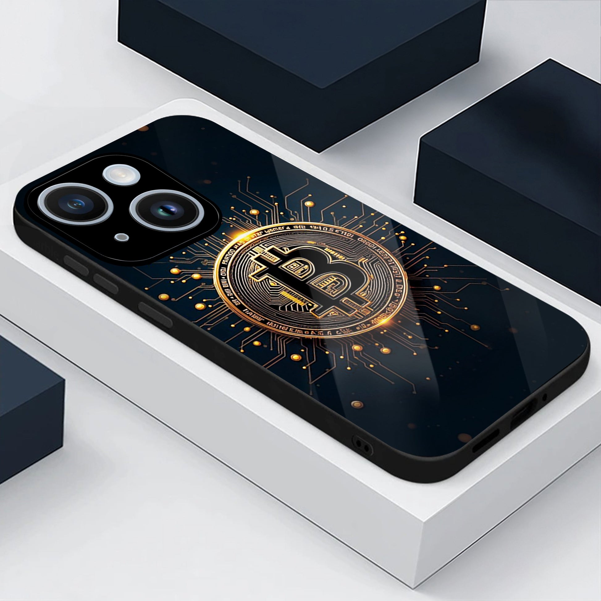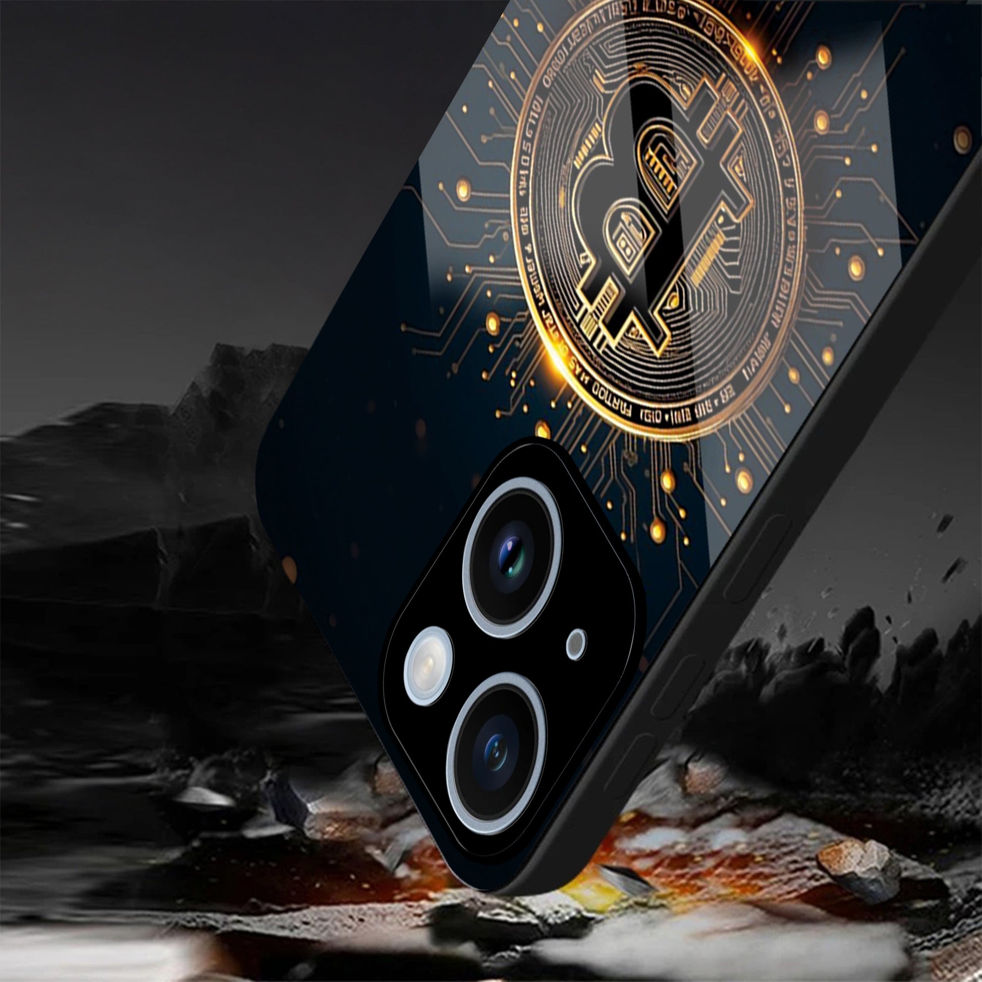 iPhone 14 Premium Acrylic Shockproof Glass Back Case (Bitcoin Armor)