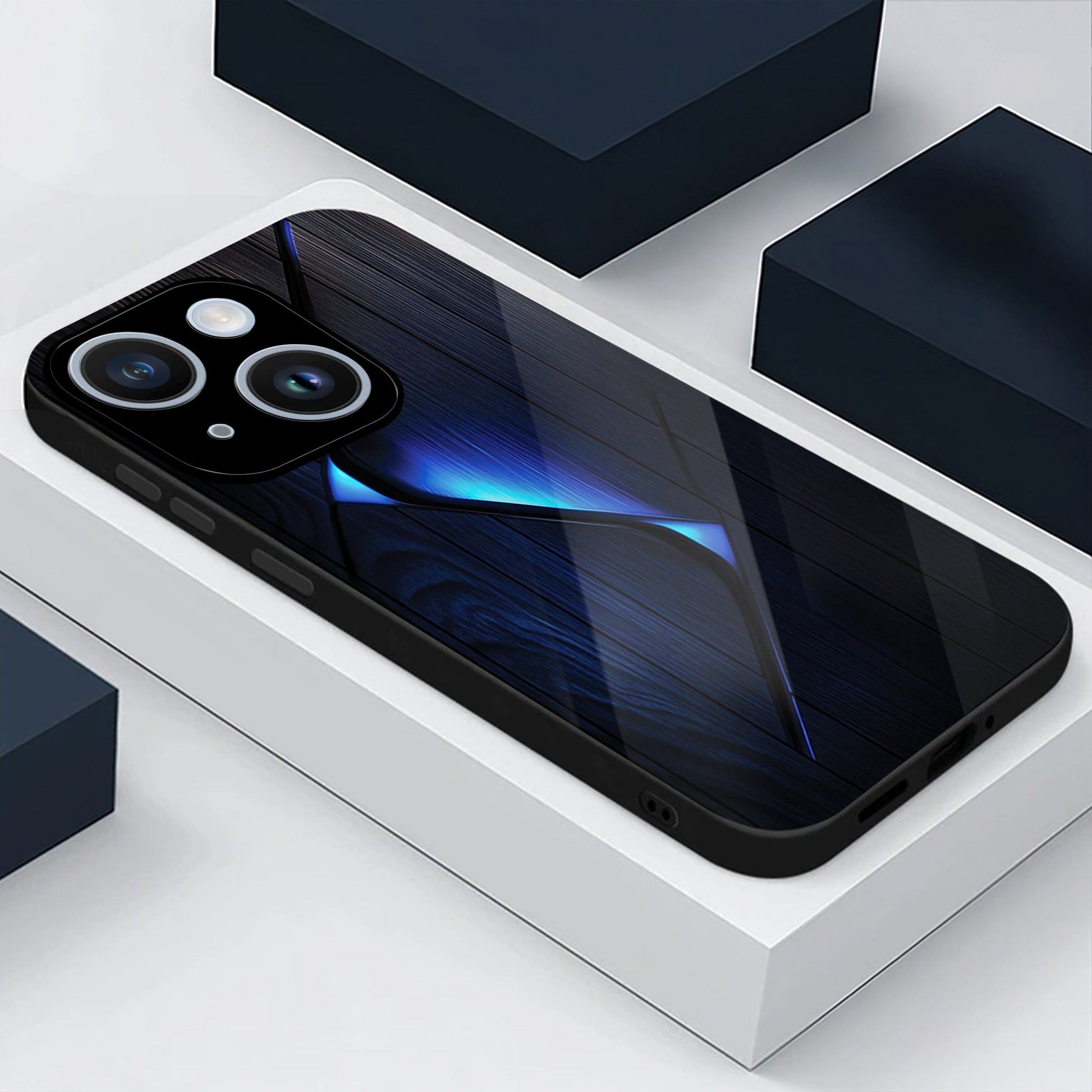 iPhone 14 Premium Acrylic Shockproof Glass Back Case (Blue Gradient)