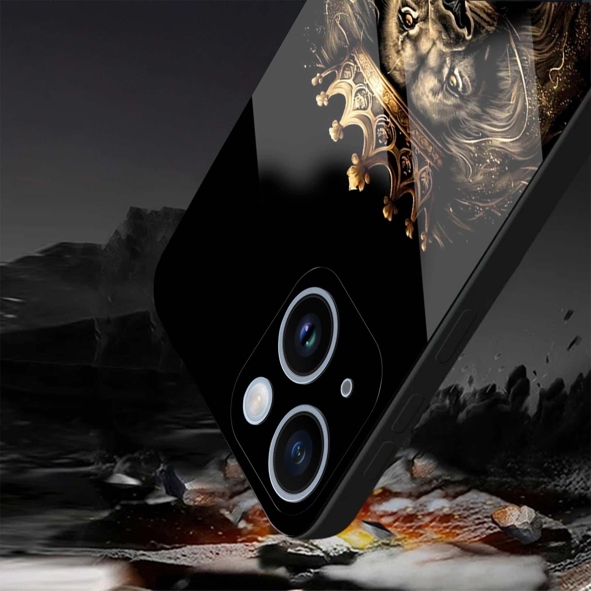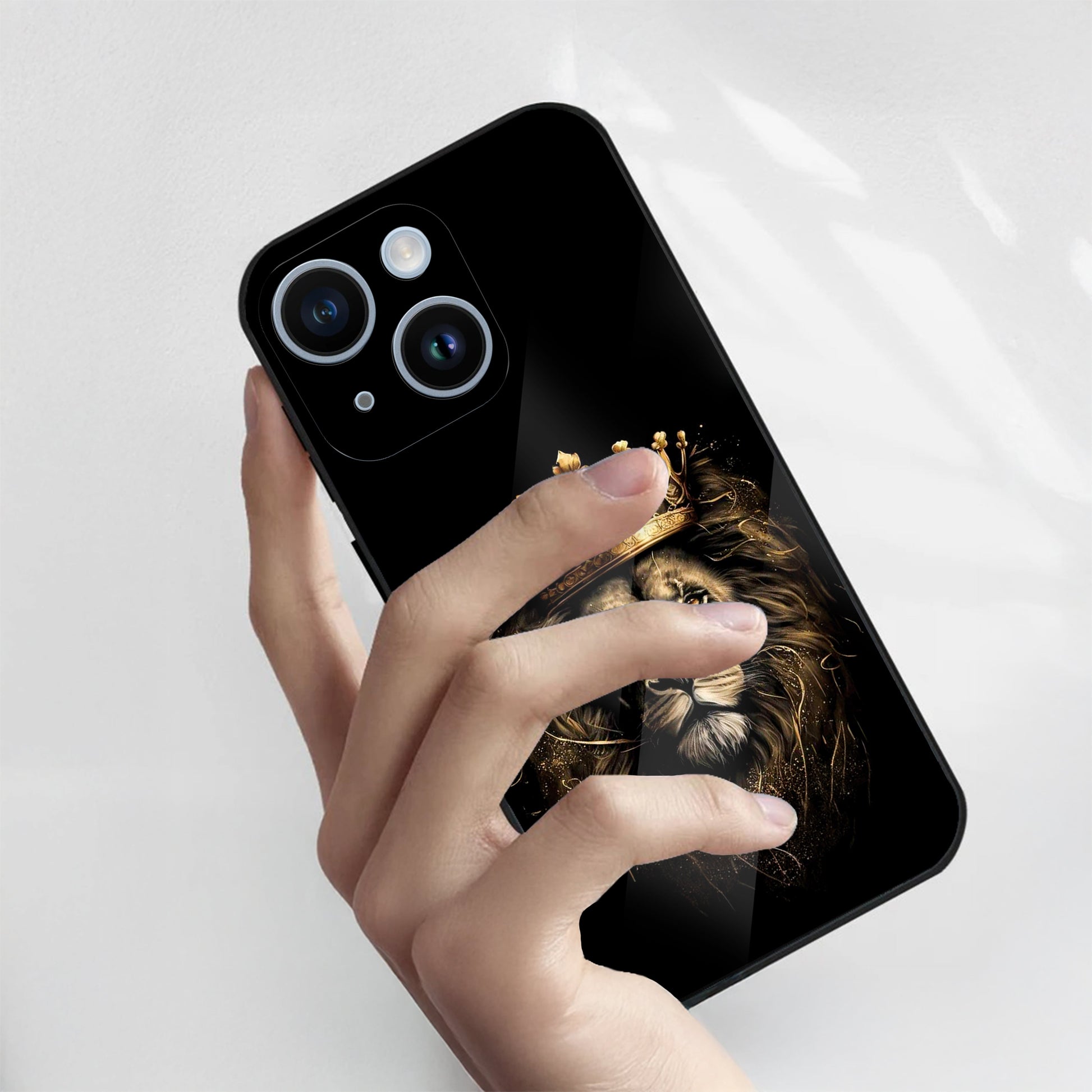 iPhone 14 Premium Acrylic Shockproof Glass Back Case (Crowned Lion)