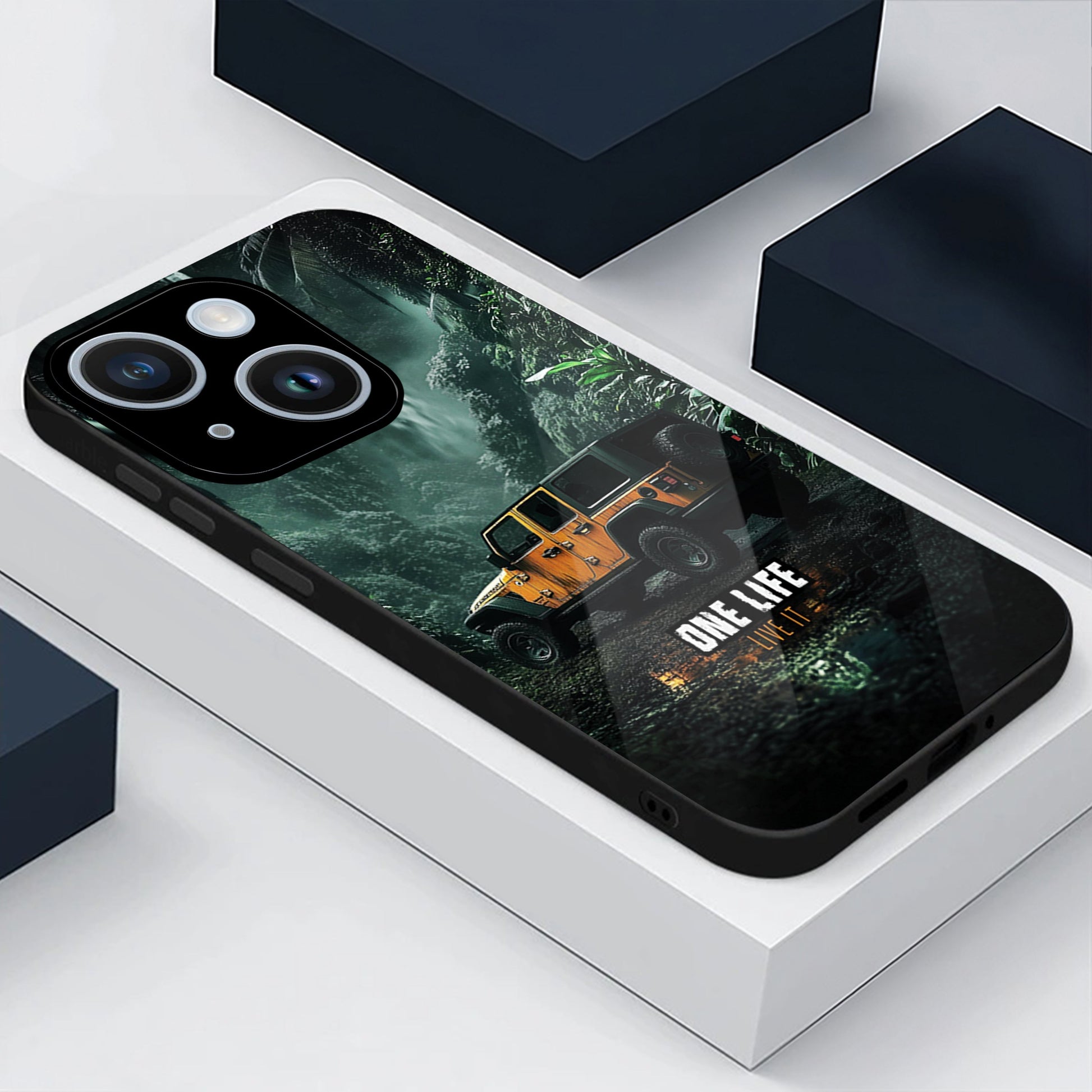 iPhone 14 Premium Acrylic Shockproof Glass Back Case ( Jeep Case )