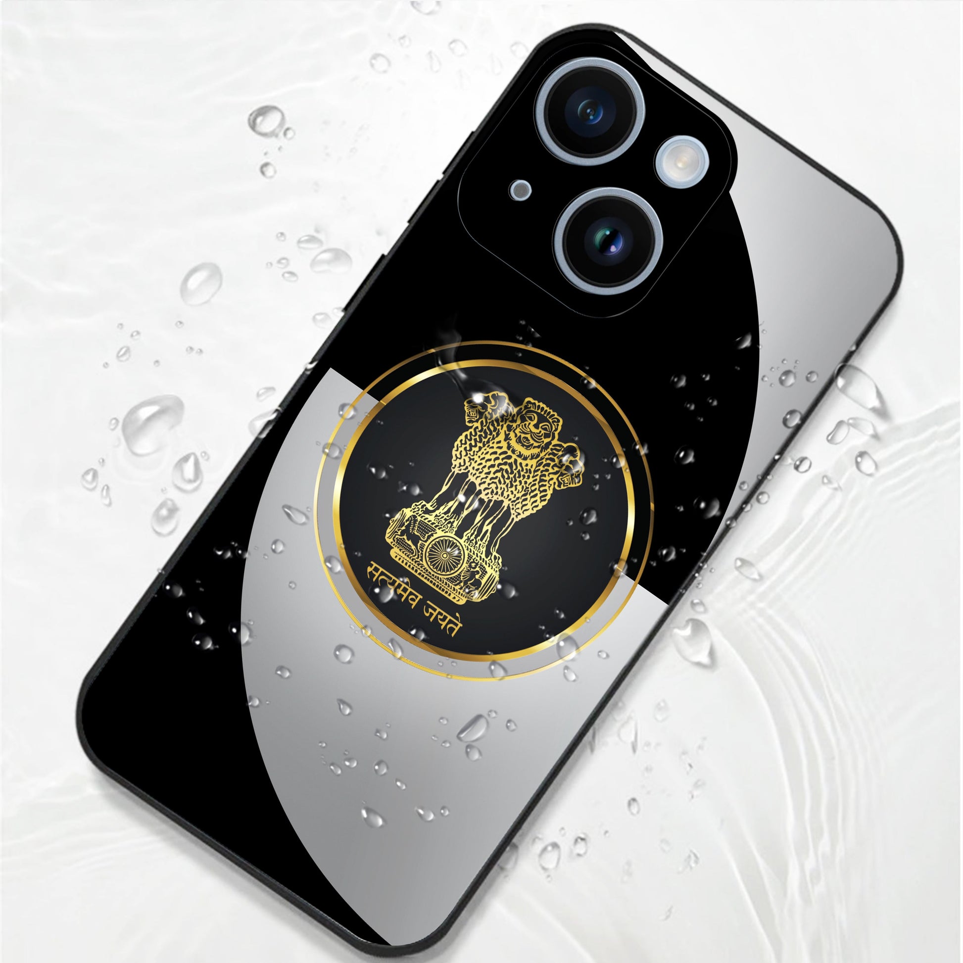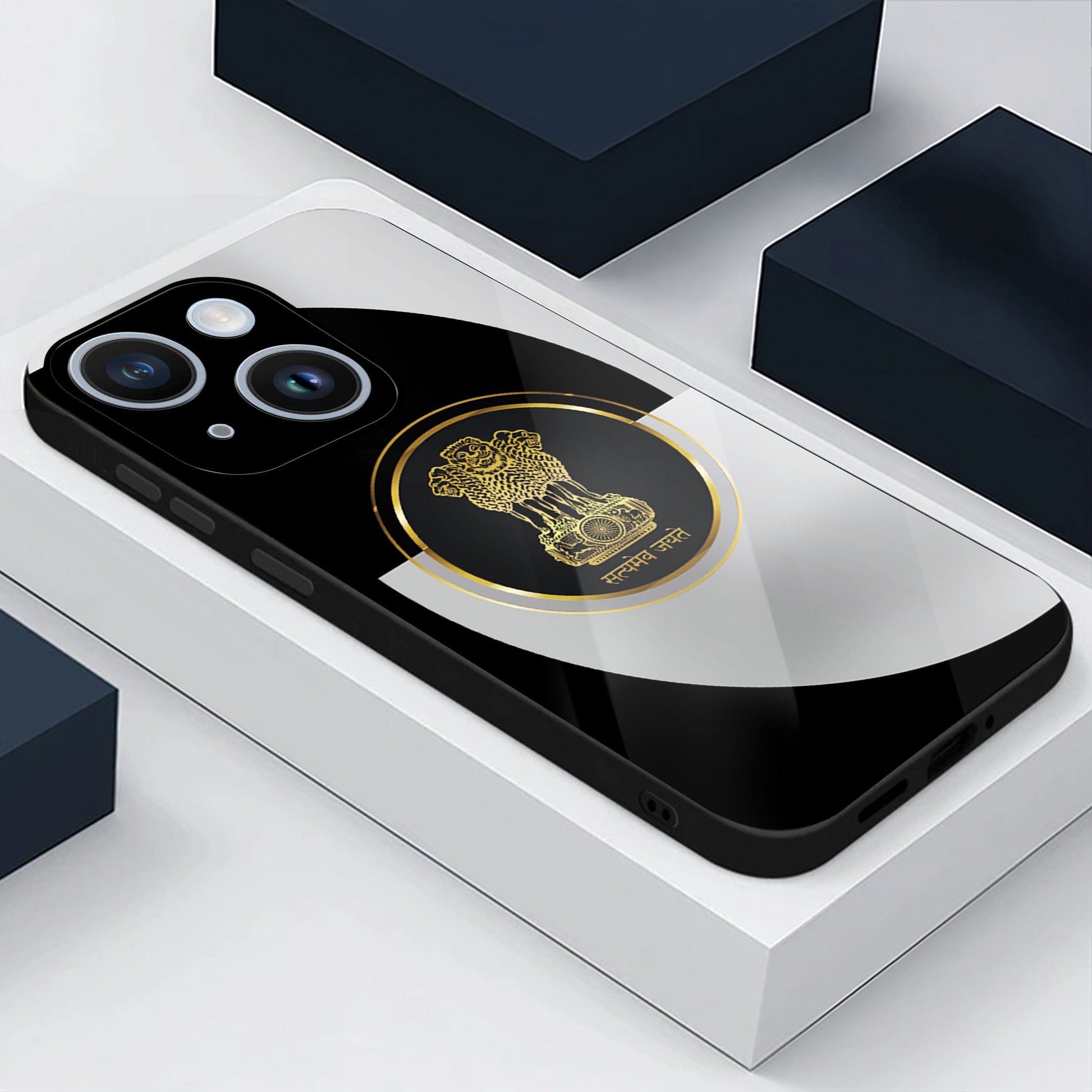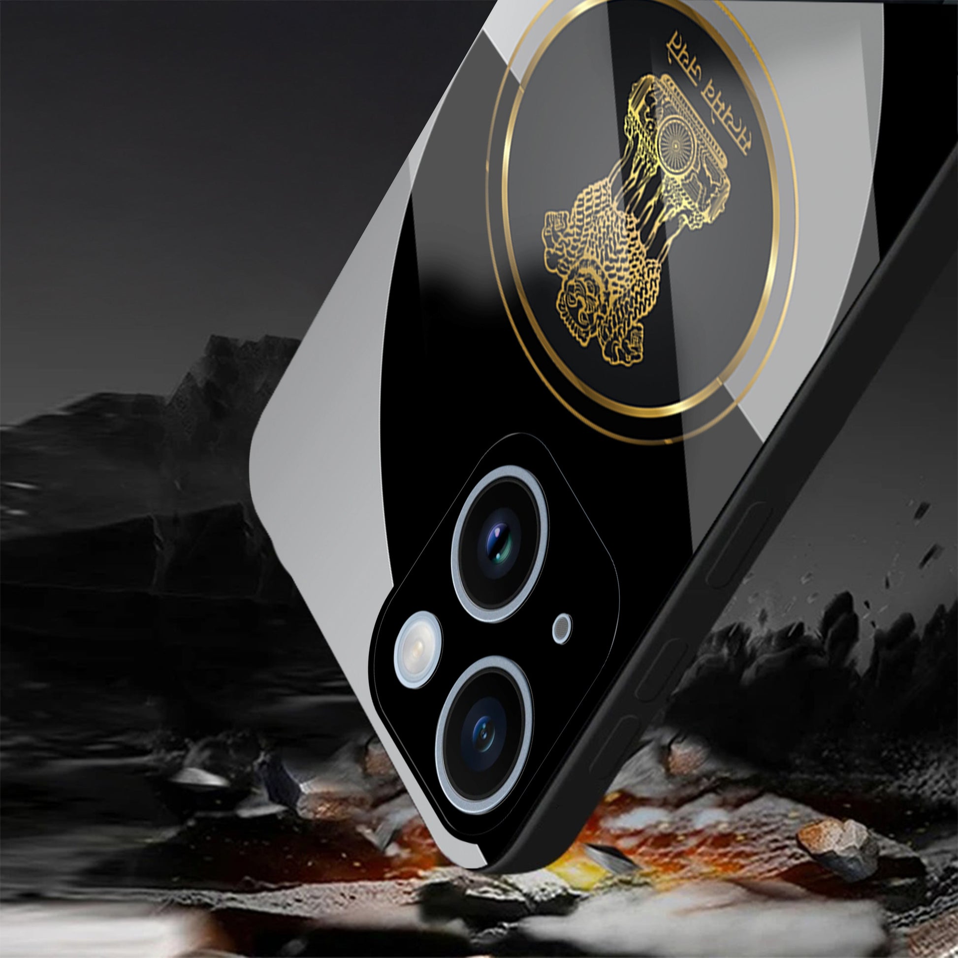 iPhone 14 Premium Acrylic Shockproof Glass Back Case (Satyamev Noir)