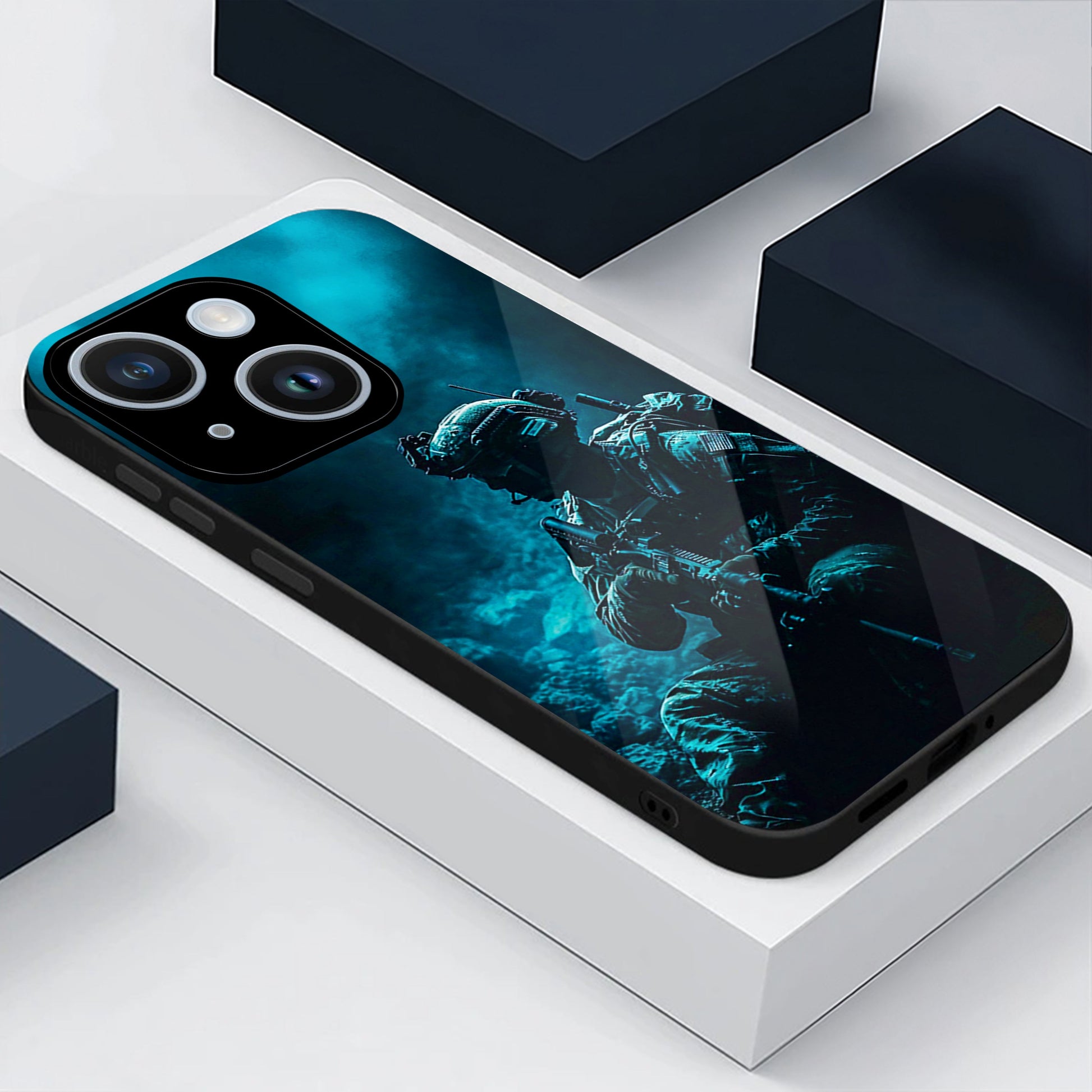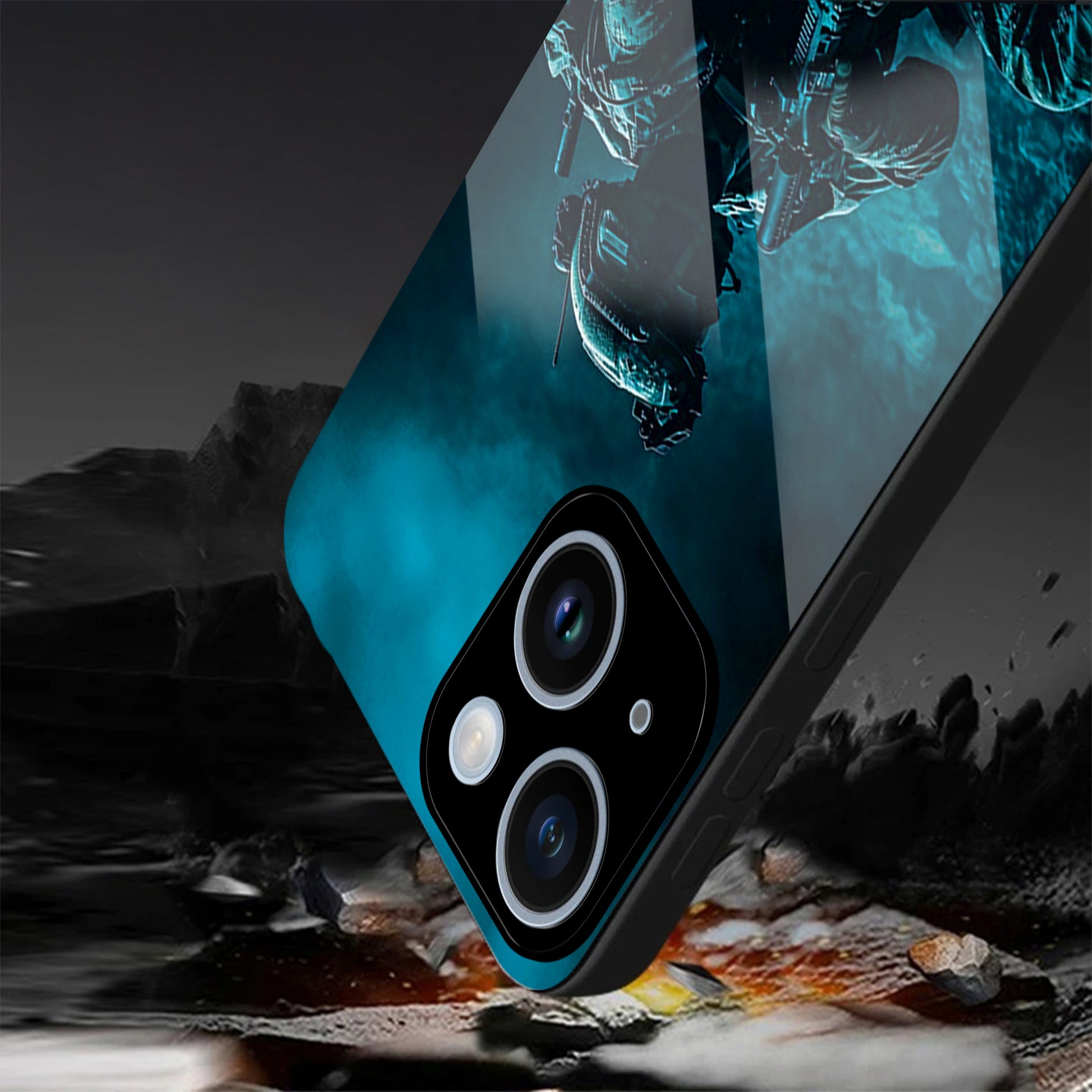 iPhone 14 Premium Acrylic Shockproof Glass Back Case (Soldier Case)