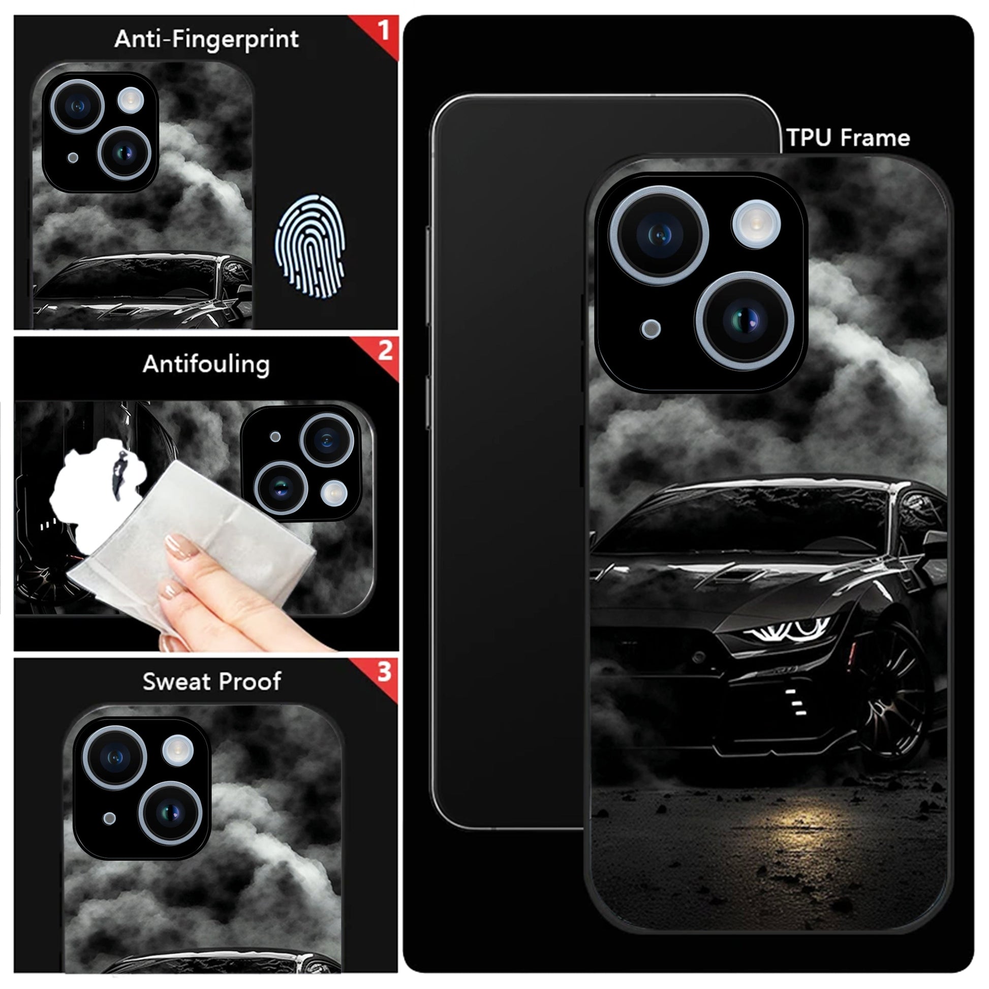 iPhone 15 Premium Acrylic Shockproof Glass Back Case (Black-BMW)