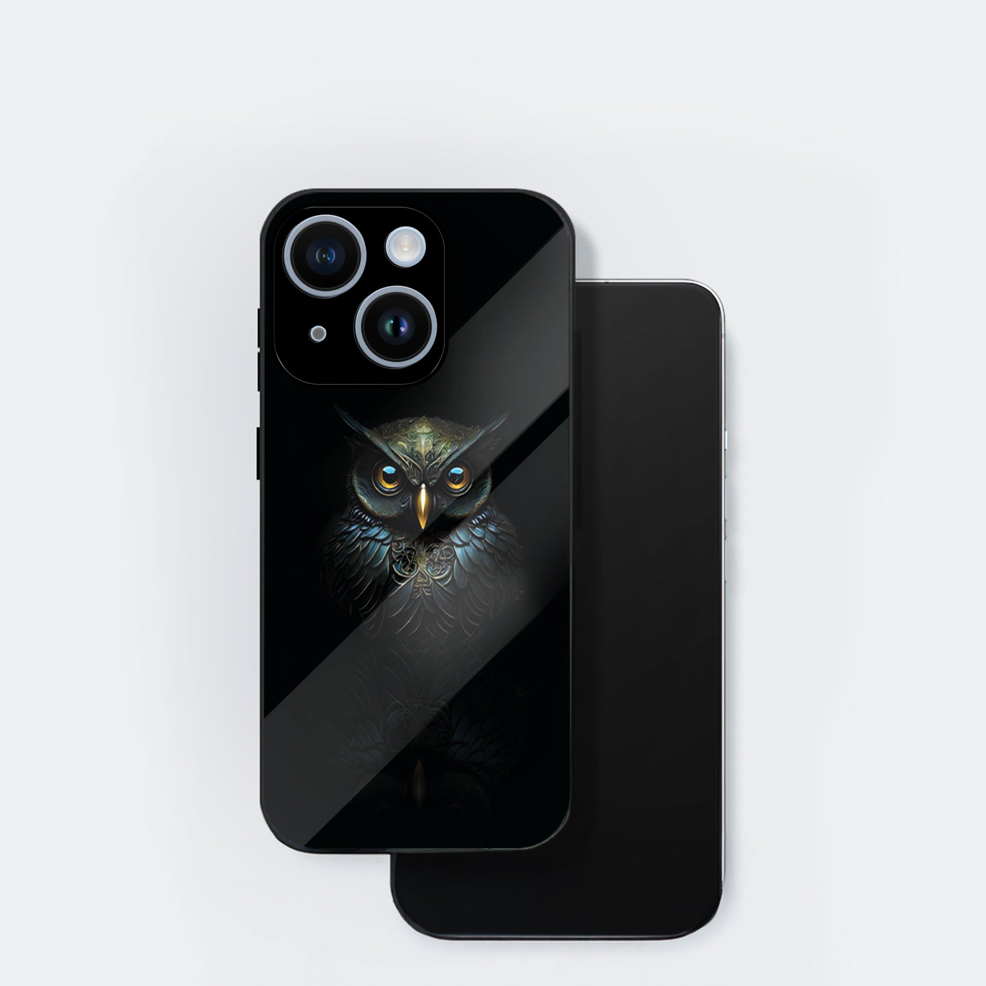 iPhone 15 Premium Acrylic Shockproof Glass Back Case ( Midnight Owl )