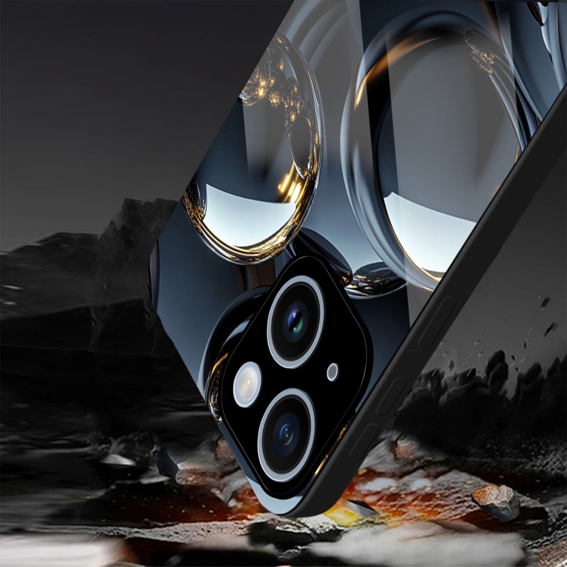 iPhone 15 Premium Acrylic Shockproof Glass Back Case (Mirror Spheres)