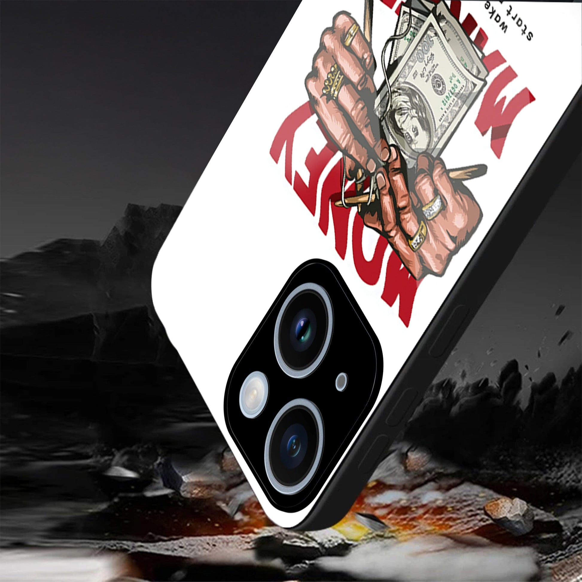 iPhone 15 Premium Acrylic Shockproof Glass Back Case (Money Maker)