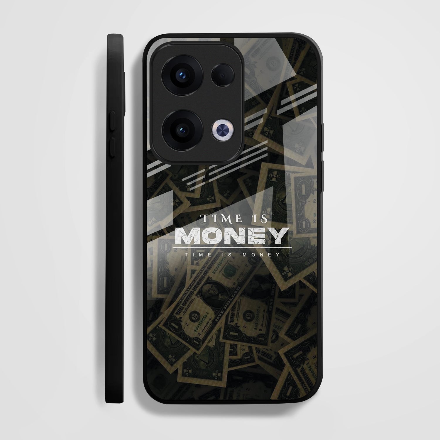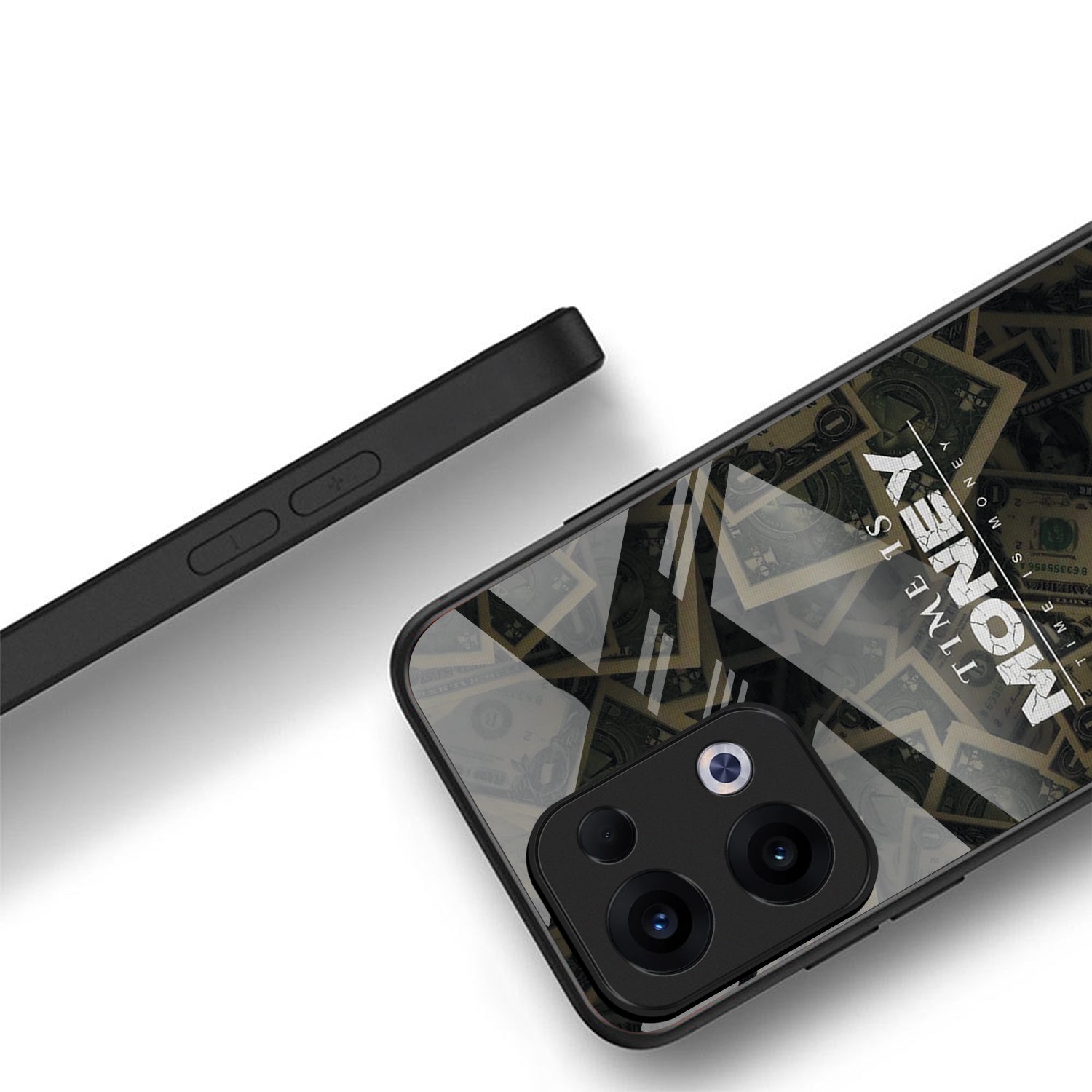 Oppo Reno 13 5G Premium Acrylic Shockproof Glass Back Case (Time is Money)
