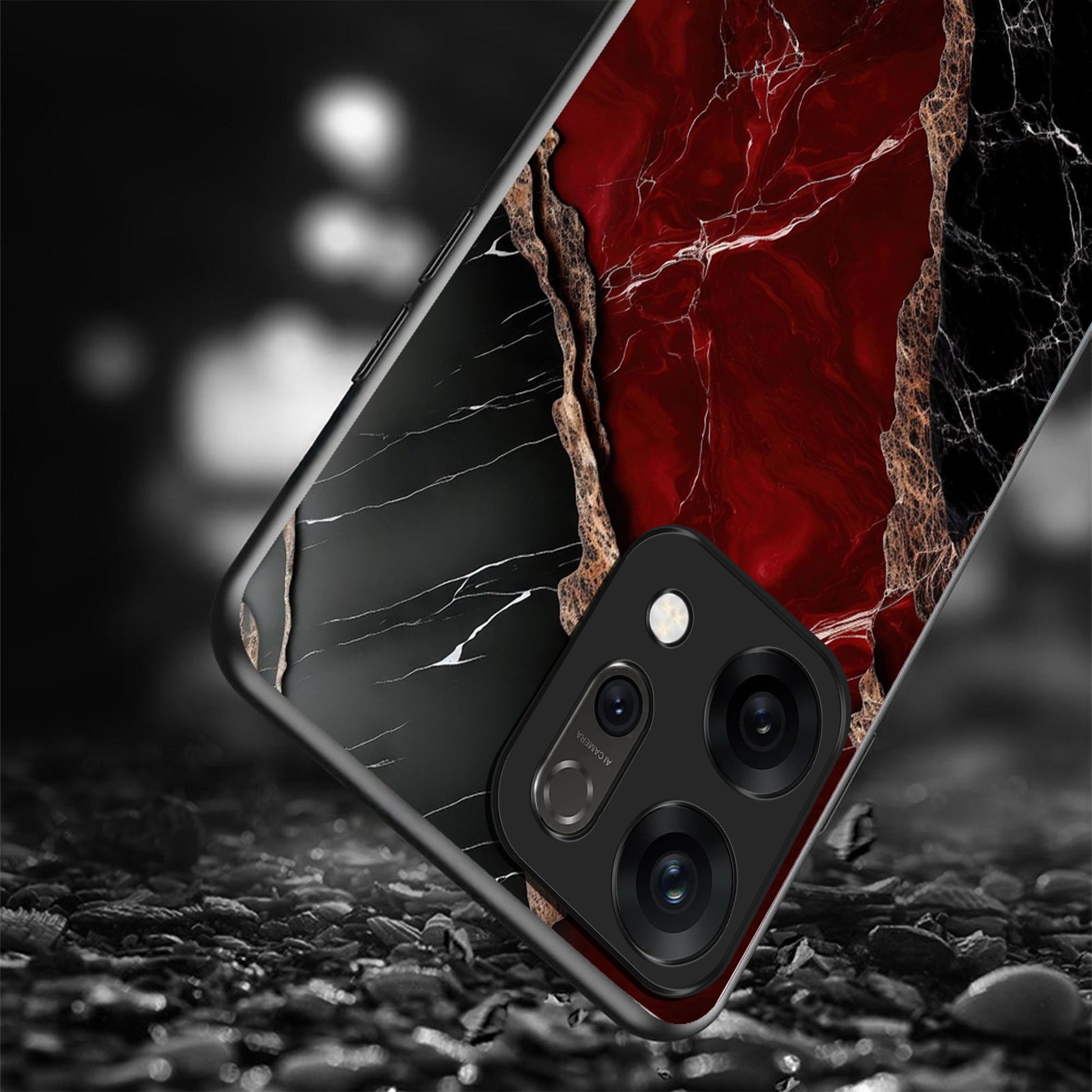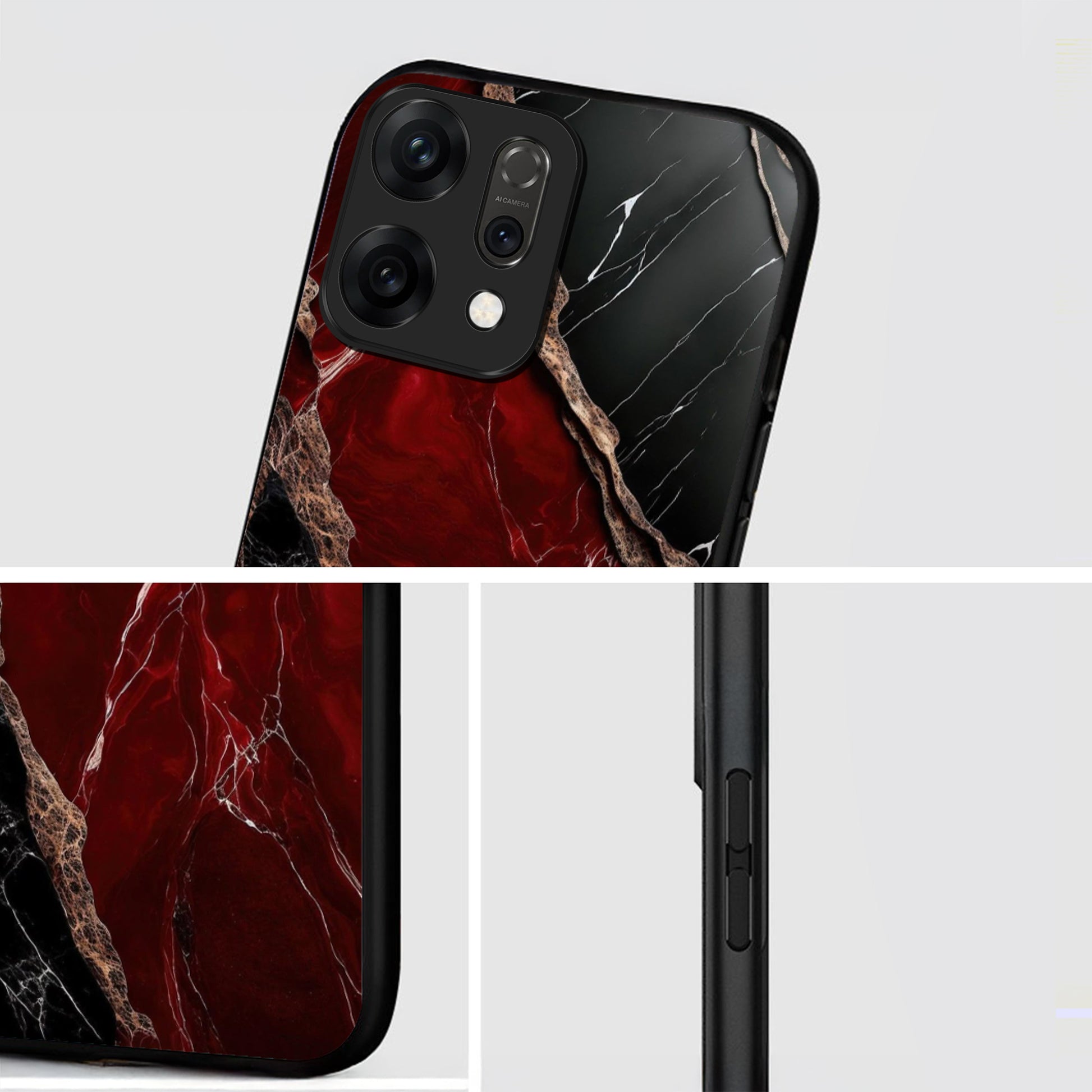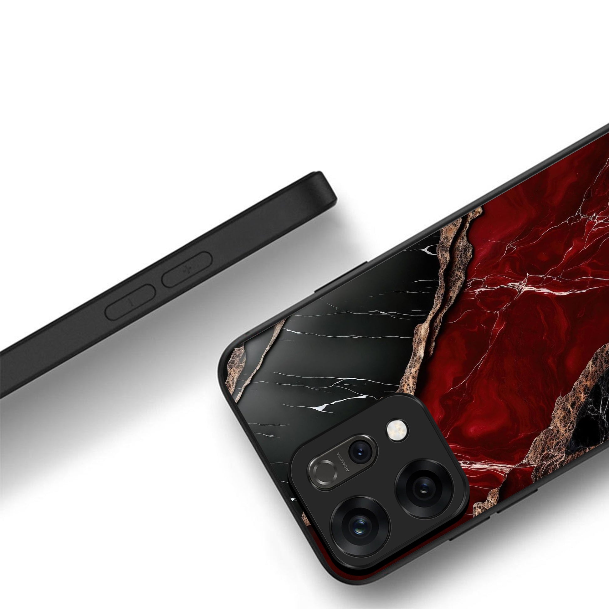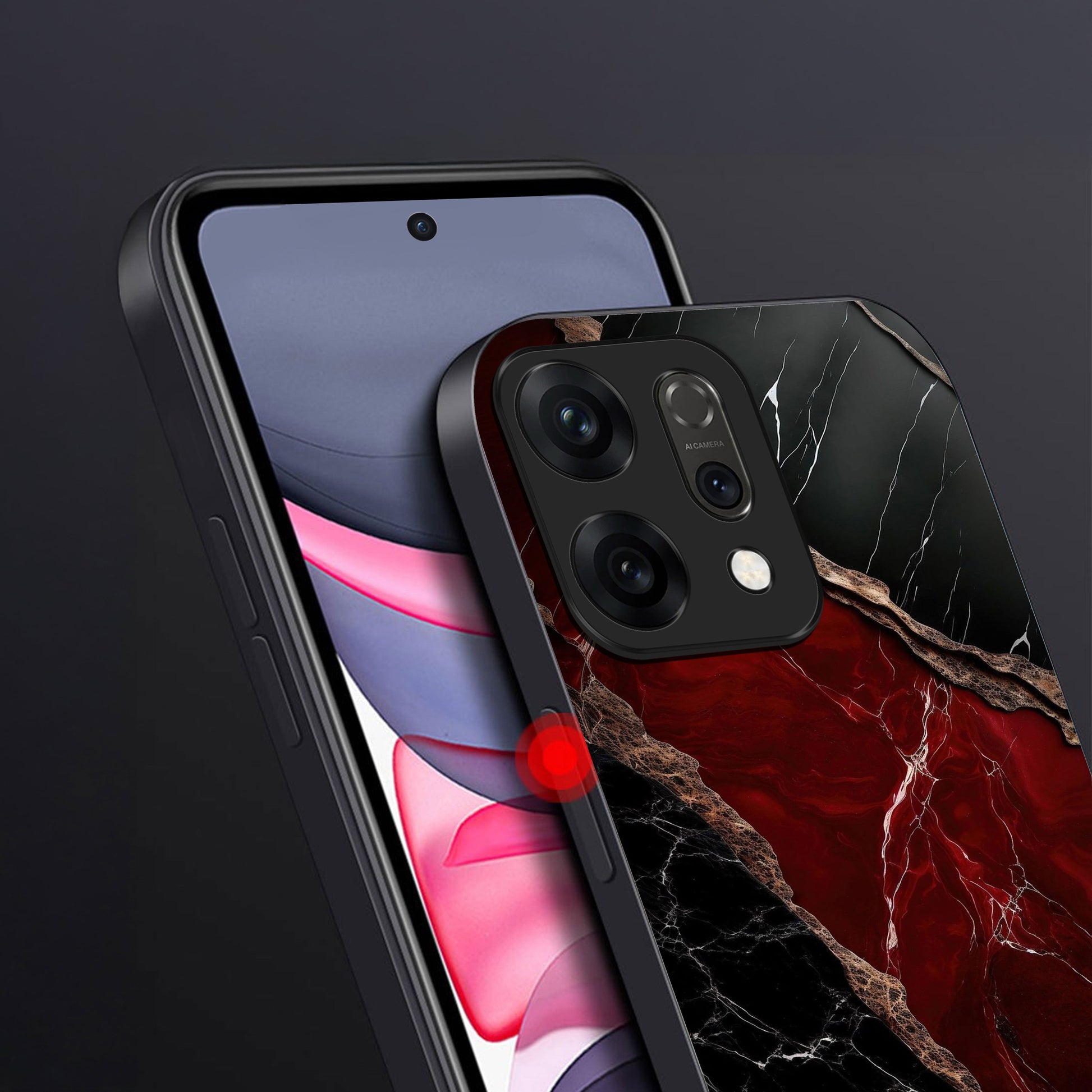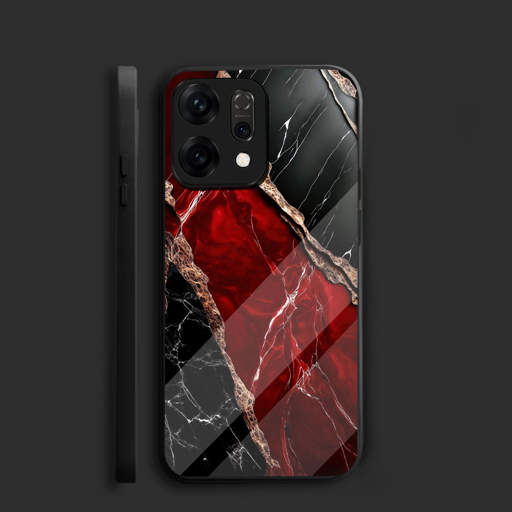 Oppo Reno 14 5G Premium Acrylic Shockproof Glass Back Case (Black Ruby Vein)