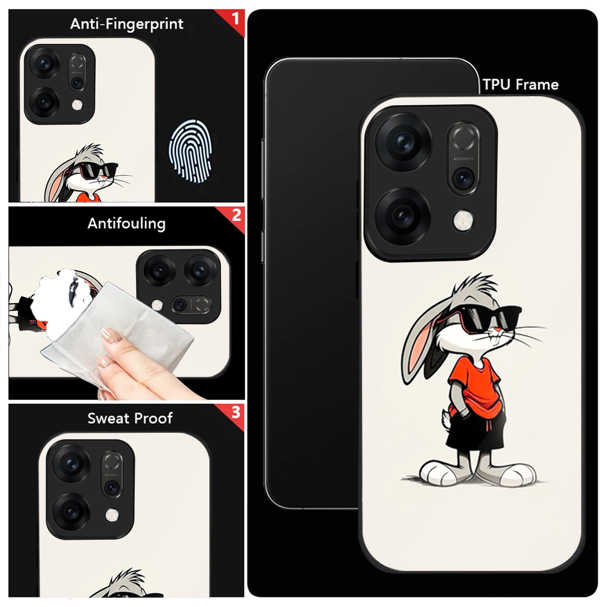 Oppo Reno 14 5G Premium Acrylic Shockproof Glass Back Case (Bunny Case)