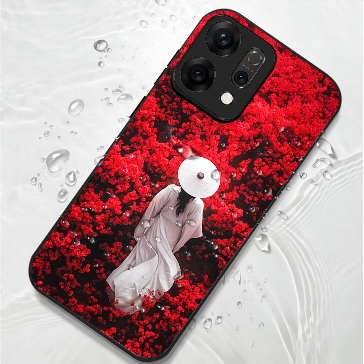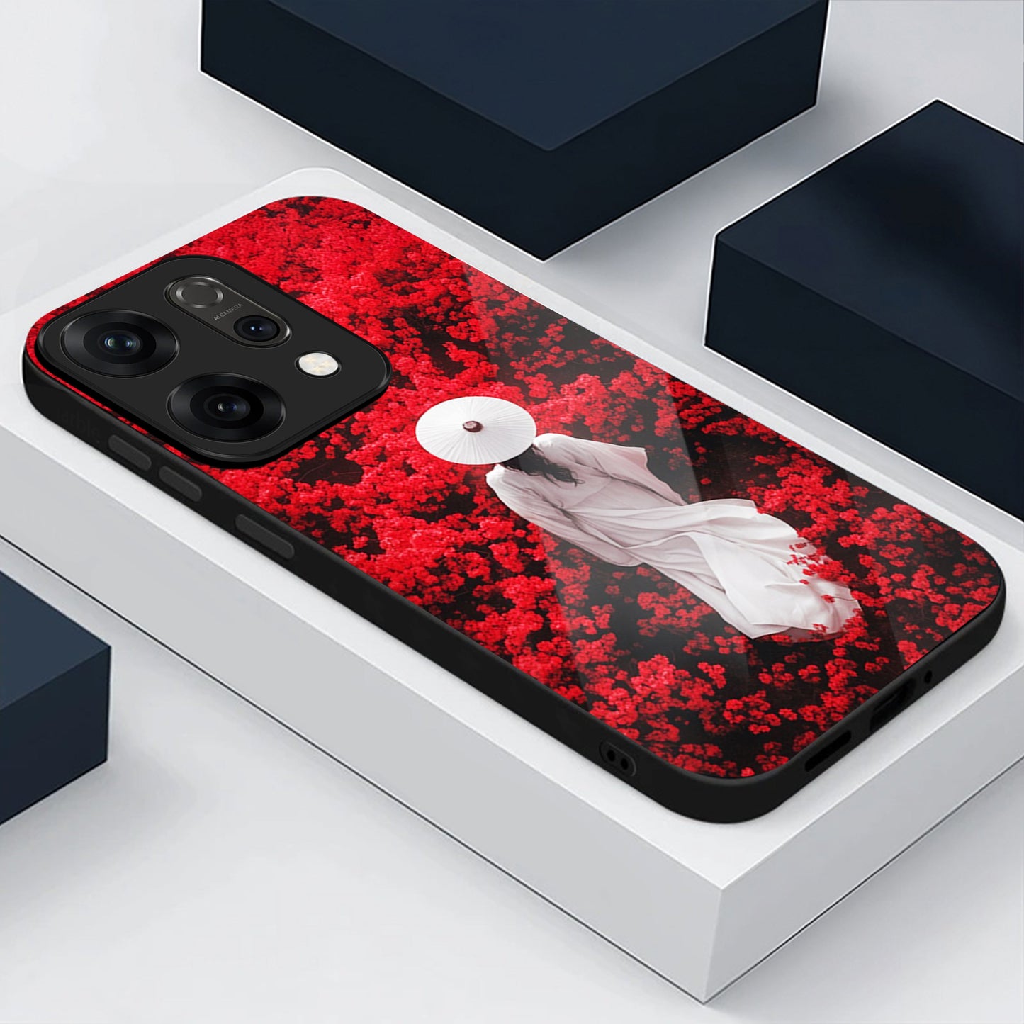 Oppo Reno 14 5G Premium Acrylic Shockproof Glass Back Case (Red Blossoms)