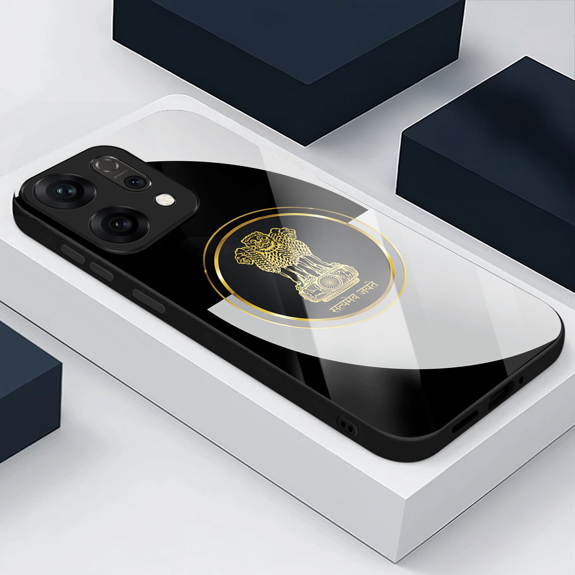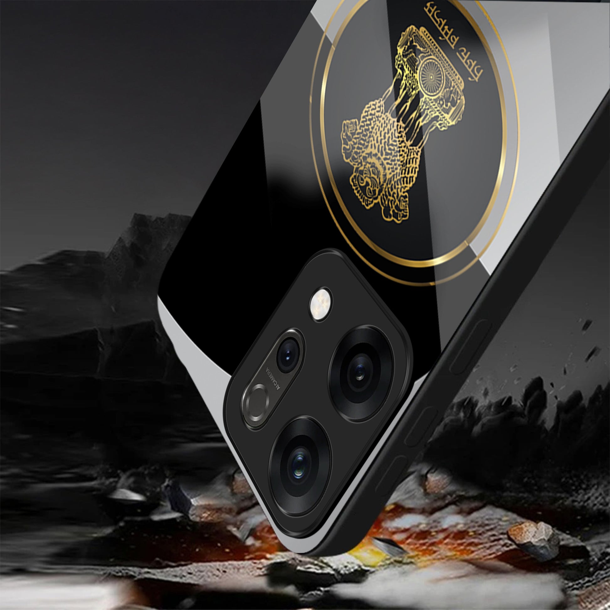 Oppo Reno 14 5G Premium Acrylic Shockproof Glass Back Case (Satyamev Noir)