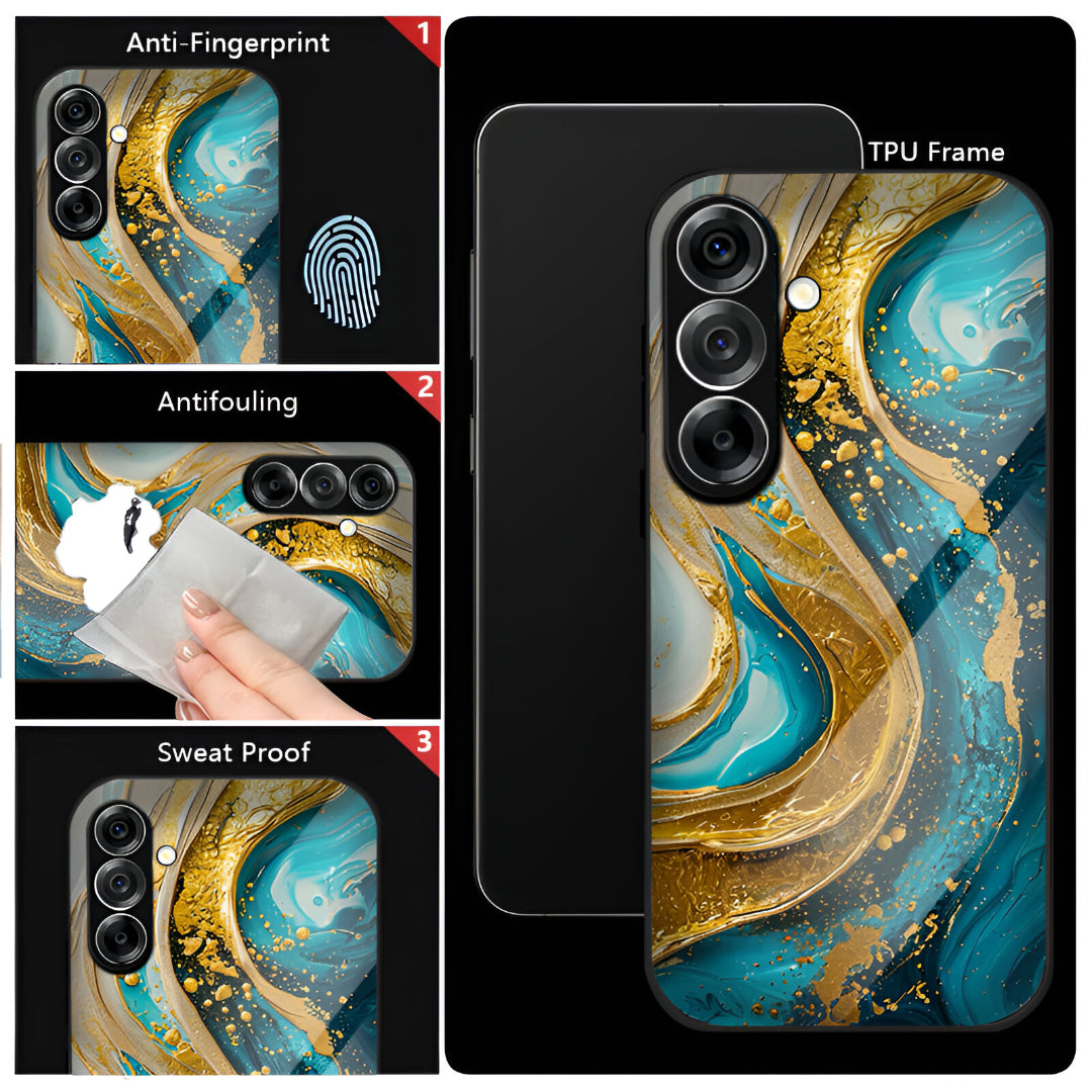 Samsung Galaxy A36 5G Premium Acrylic Shockproof Glass Back Case (Ocean Gold)