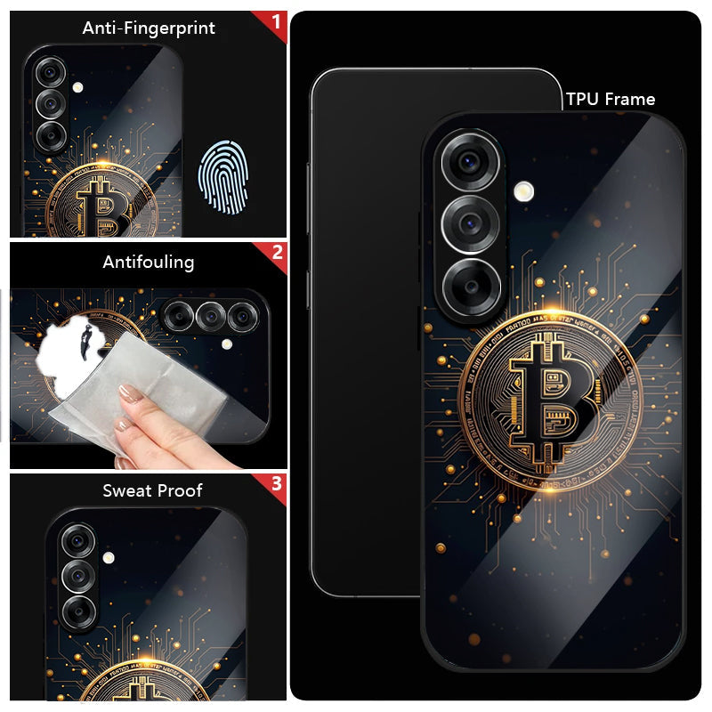 Samsung Galaxy A36 5G Premium Acrylic Shockproof Glass Back Case (Bitcoin Armor)