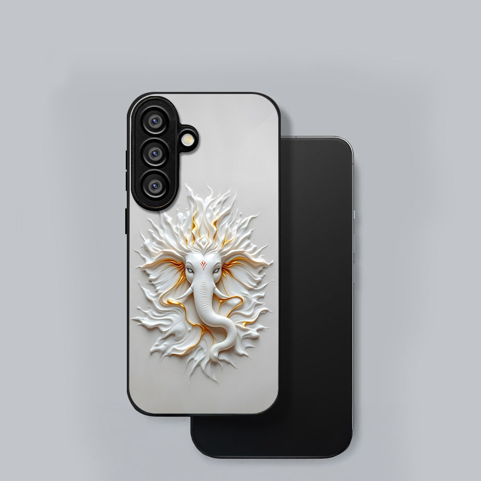 Samsung Galaxy A56 5G Premium Acrylic Shockproof Glass Back Case (White Ganesha)