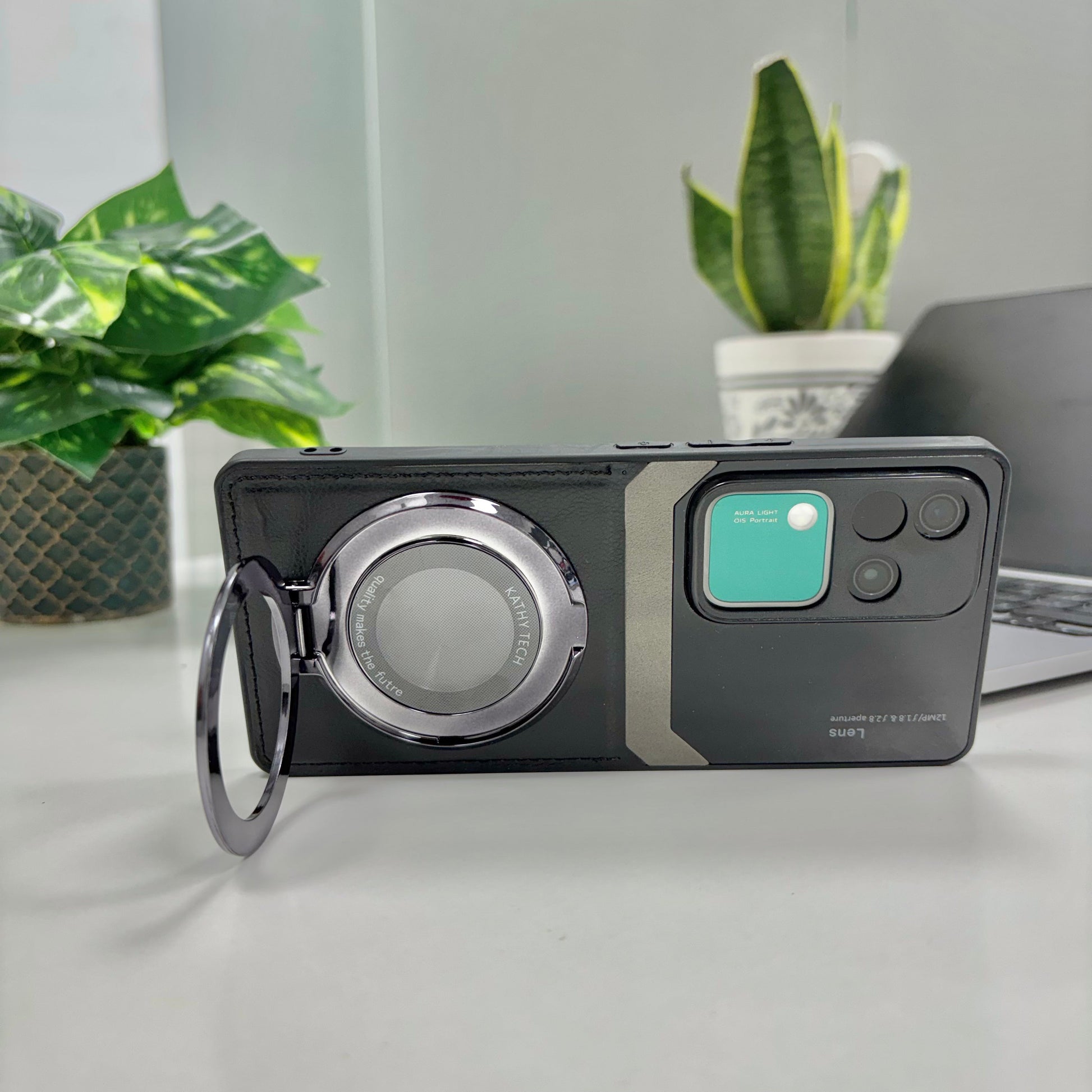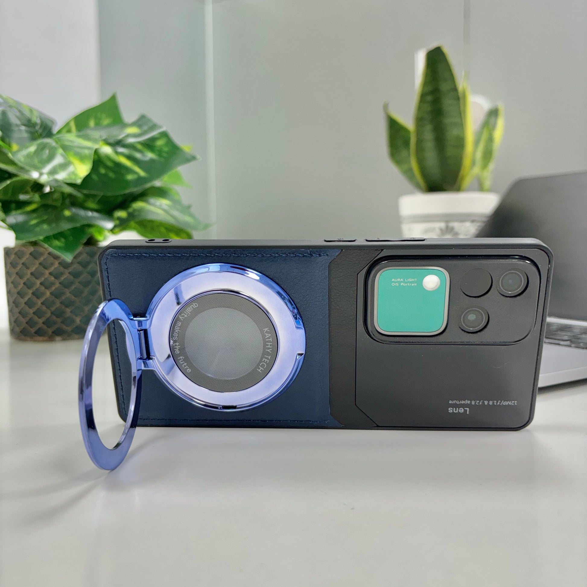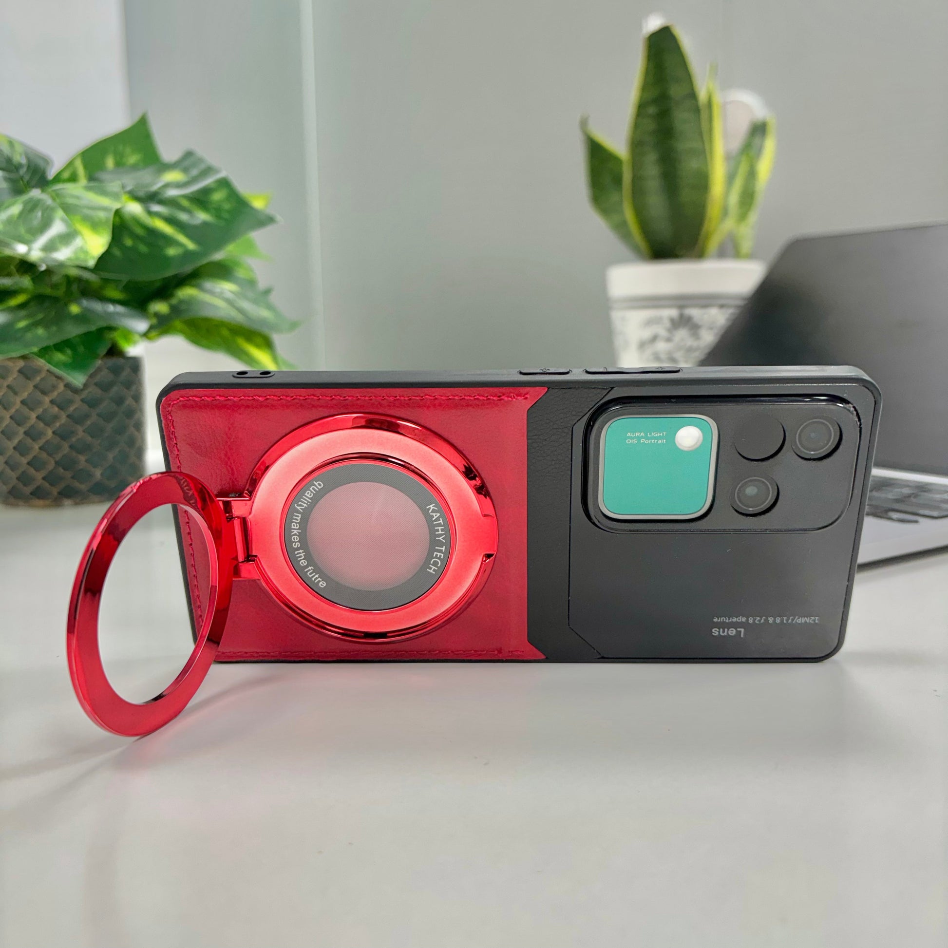 Vivo V30 Pro 5G Original Luxury Leather Lens Magnifier Ring Stand Case