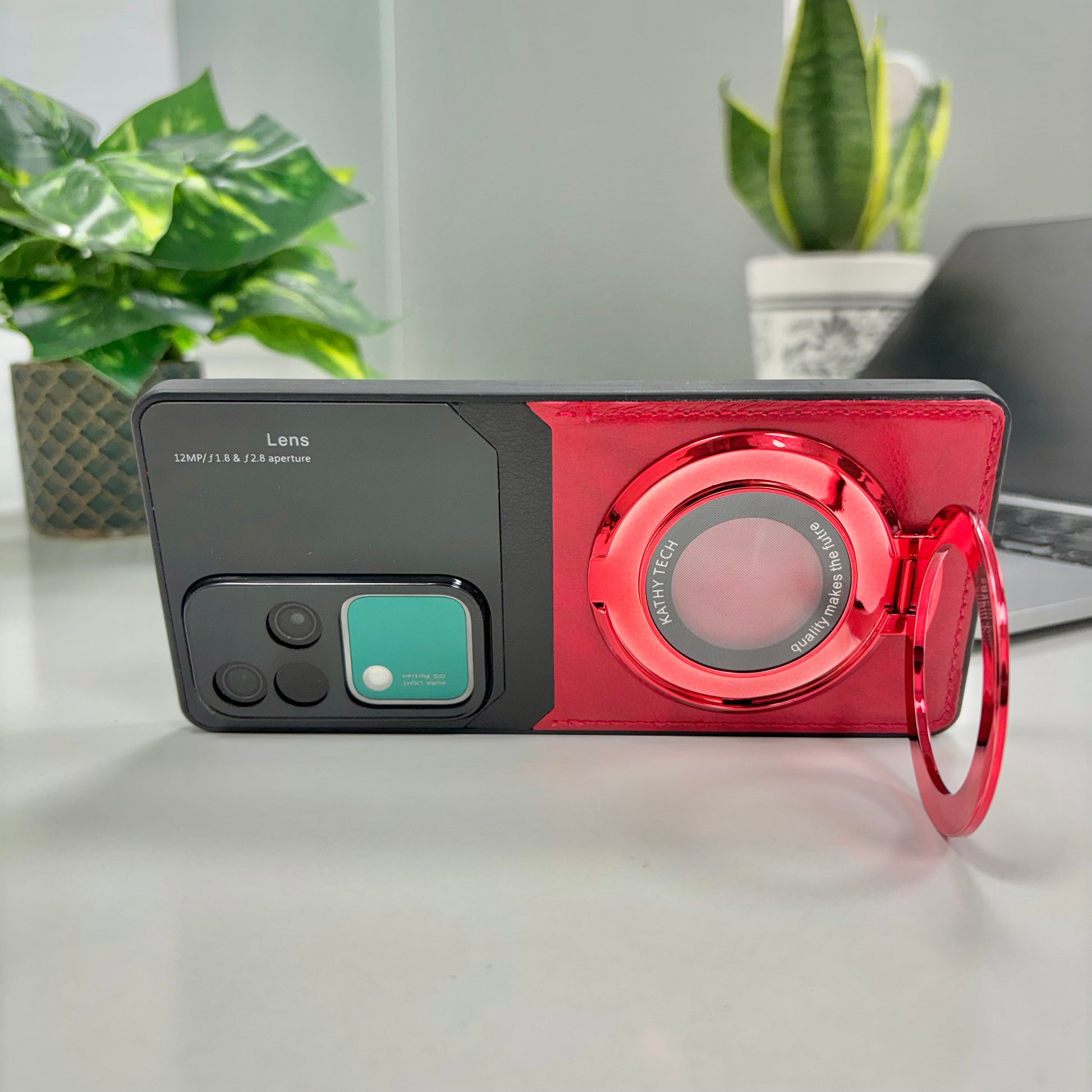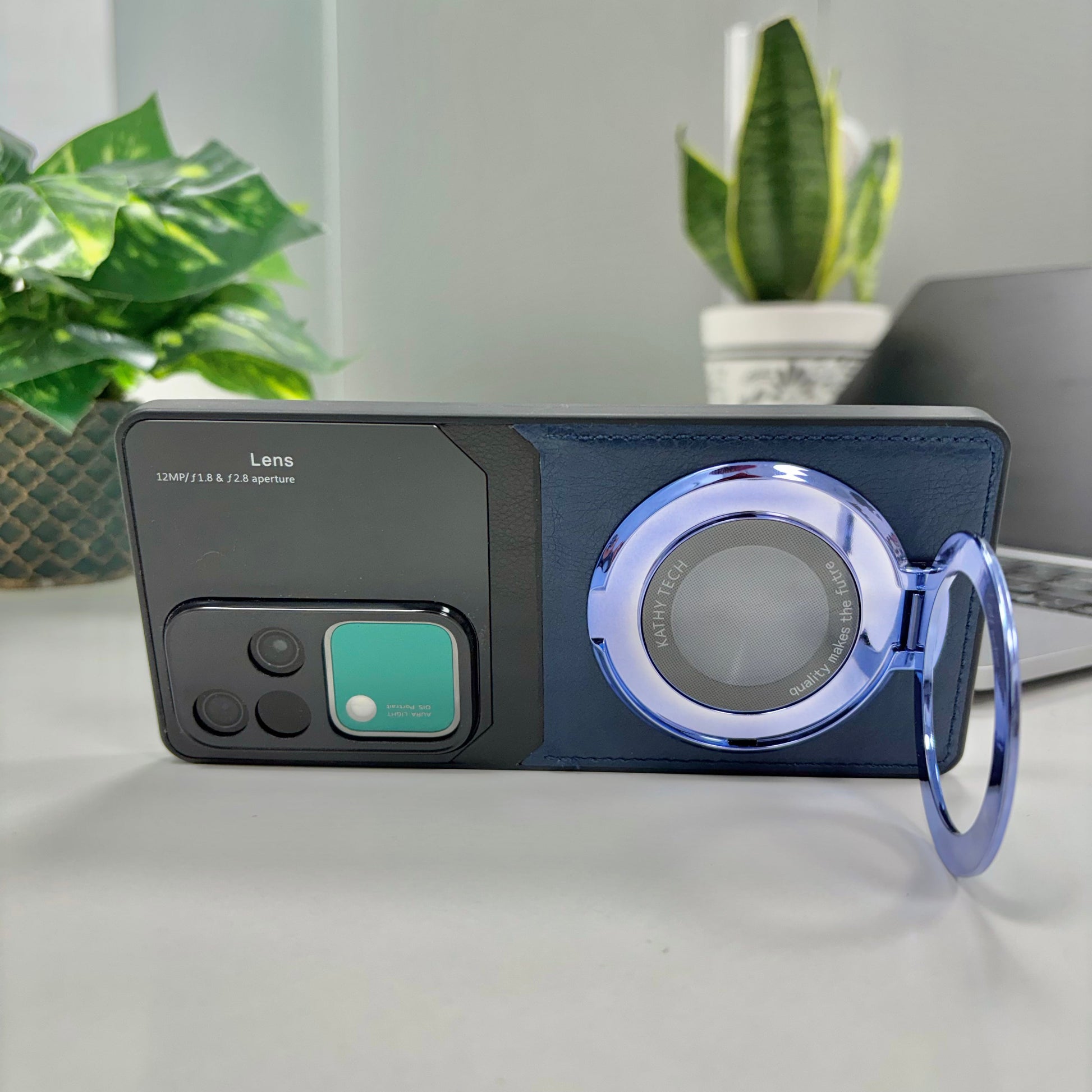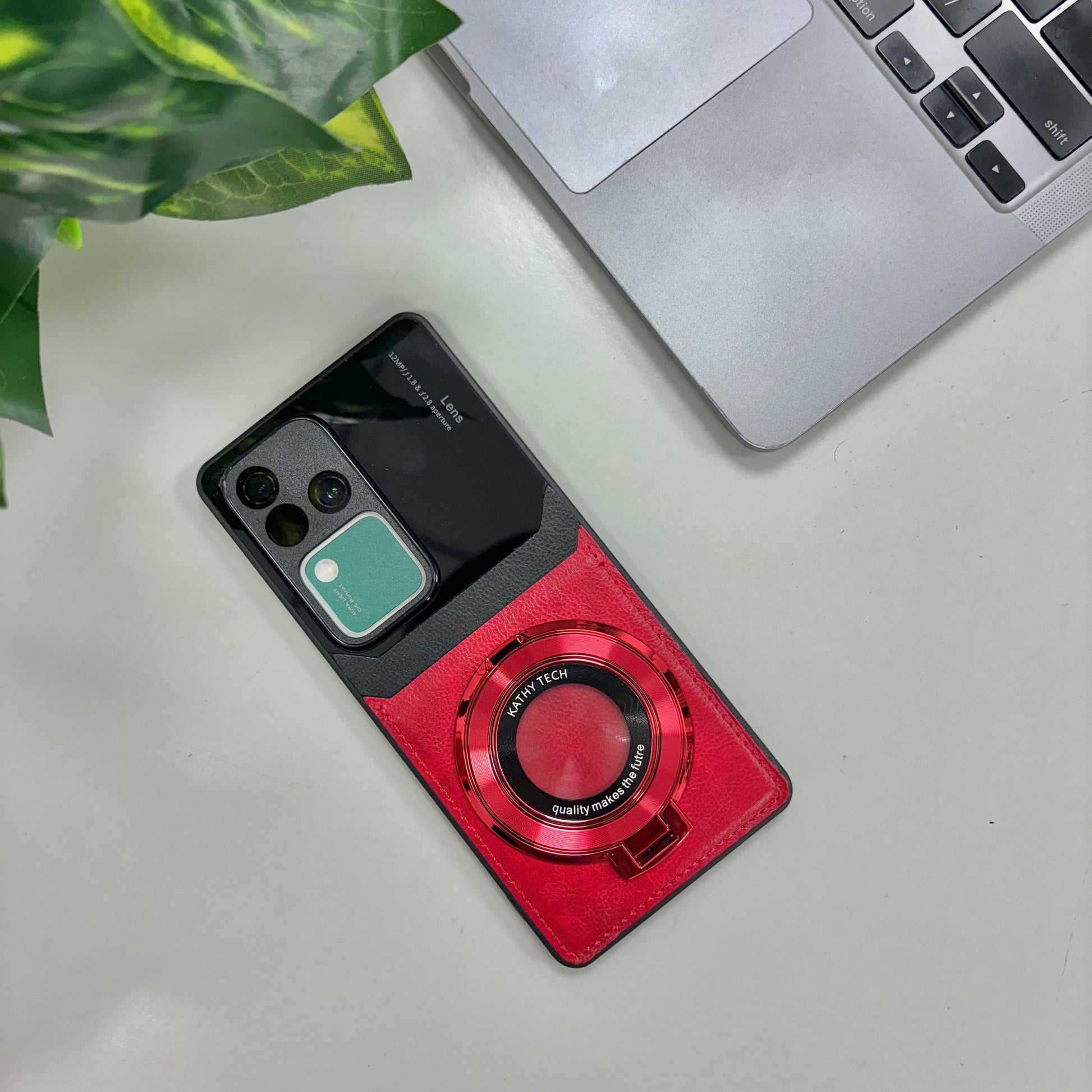 Vivo V30 Pro 5G Original Luxury Leather Lens Magnifier Ring Stand Case
