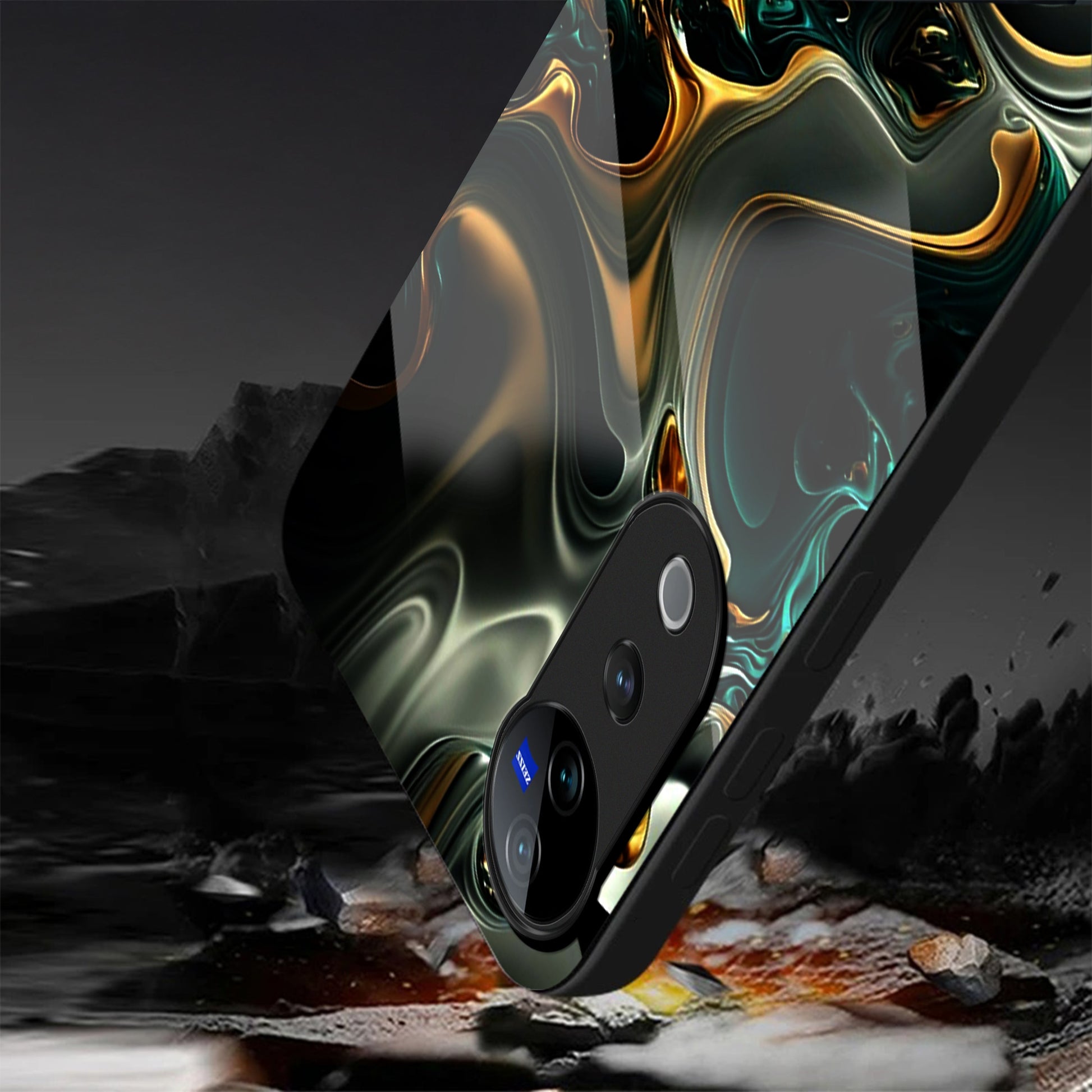 Vivo V40 Pro 5G Premium Acrylic Shockproof Glass Back Case (Ocean Ember)