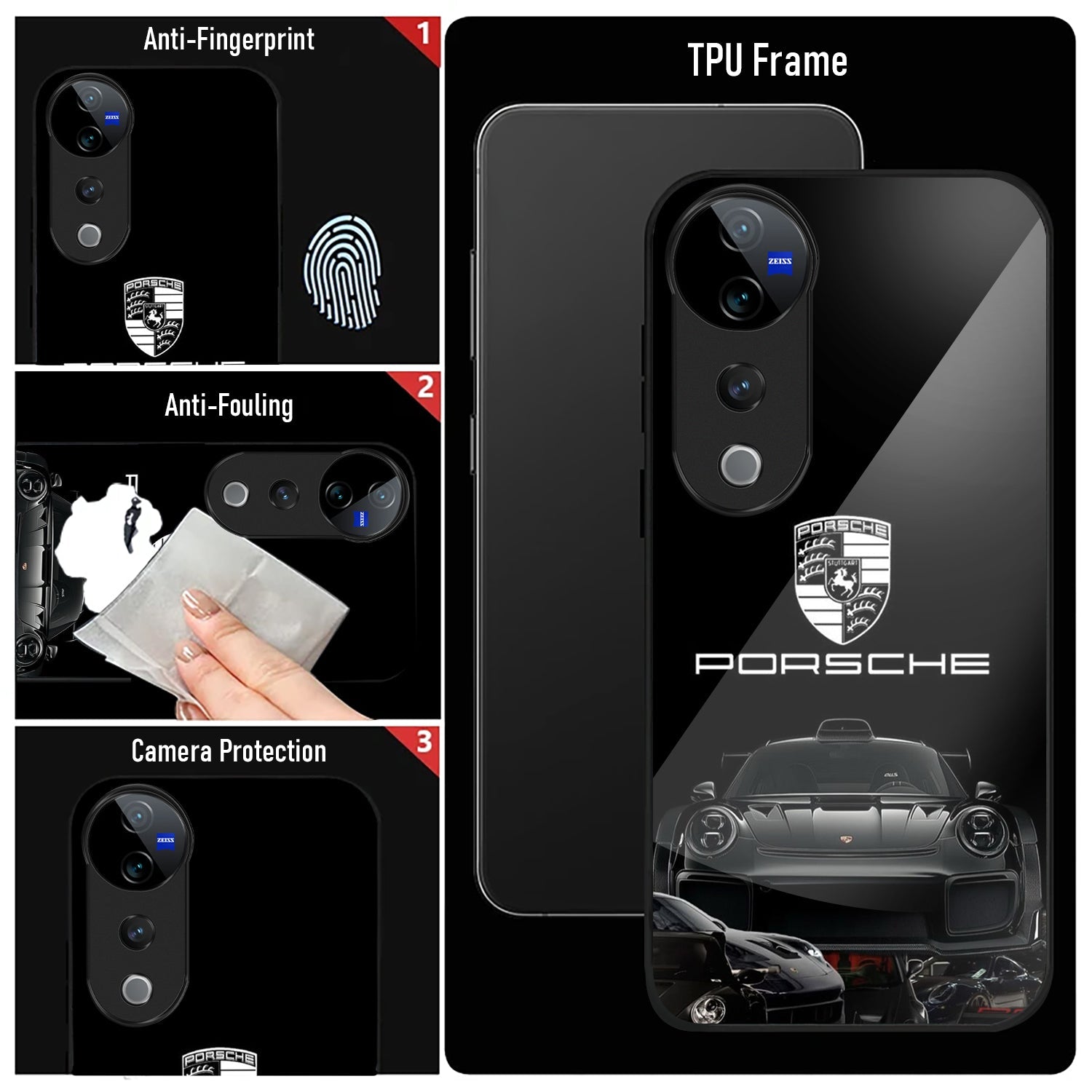 Vivo V40 Pro 5G Premium Acrylic Shockproof Glass Back Case (Black Porsche)