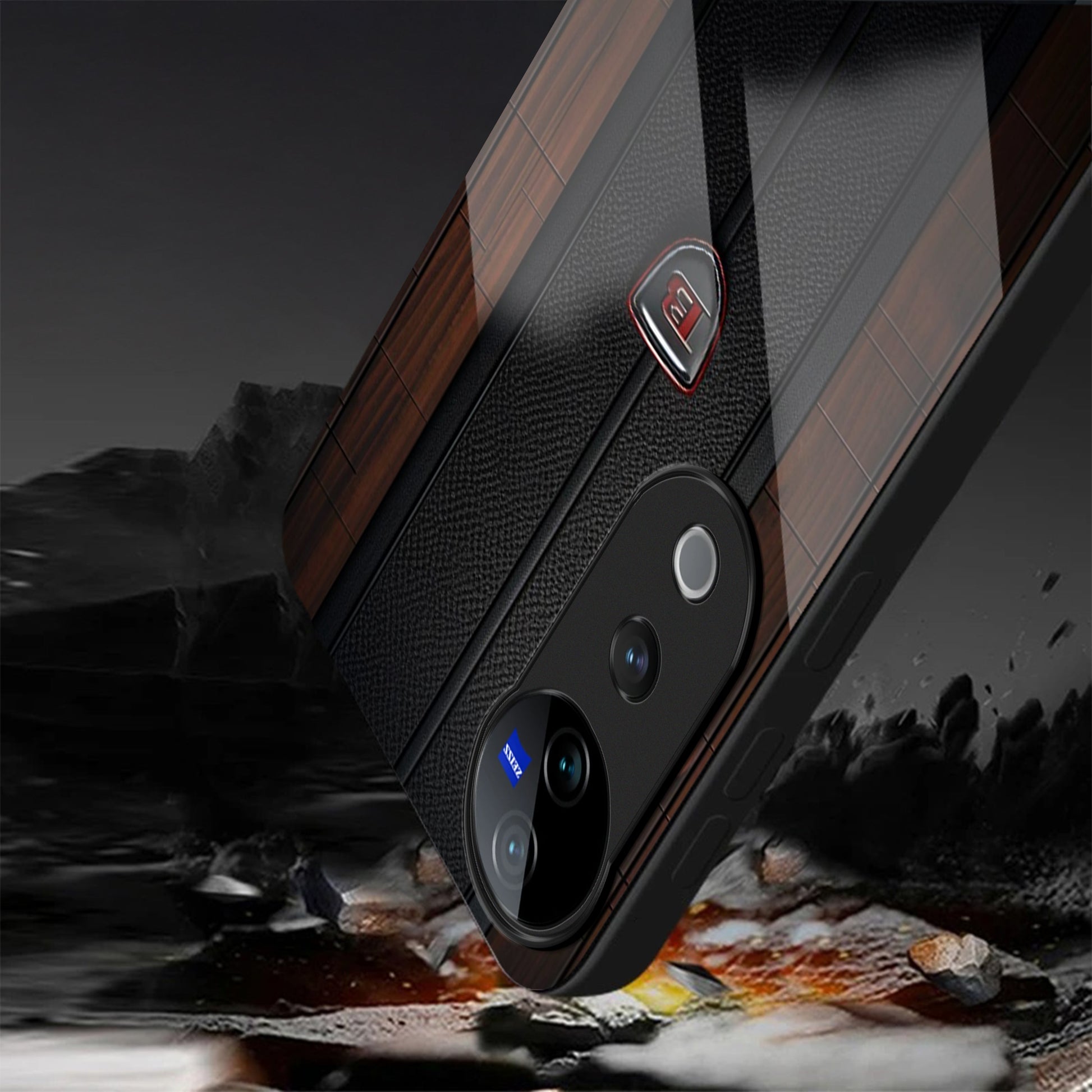 Vivo V40 Pro 5G Premium Acrylic Shockproof Glass Back Case (Carbon Oak)