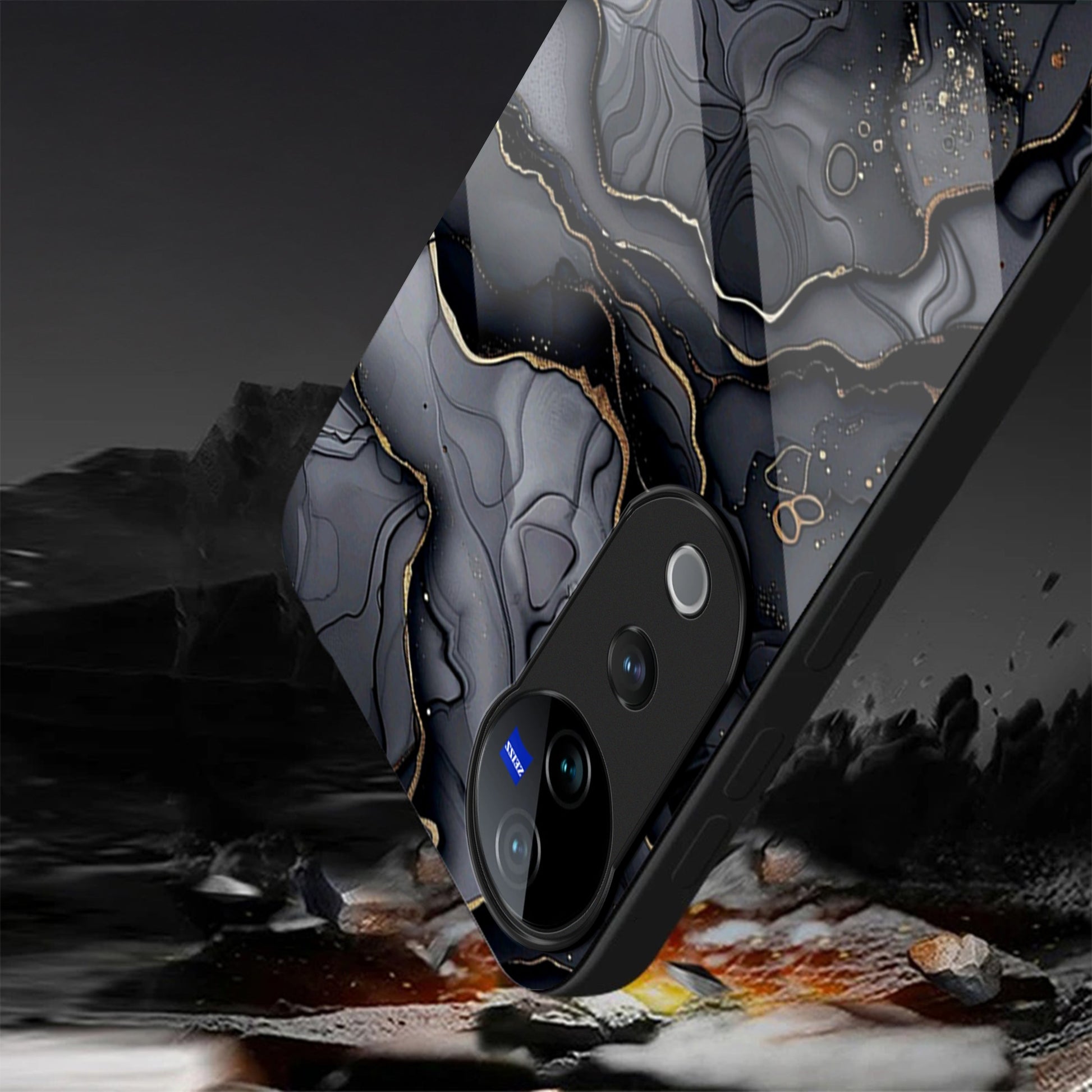 Vivo V40 Pro 5G Premium Acrylic Shockproof Glass Back Case (Black Marble)