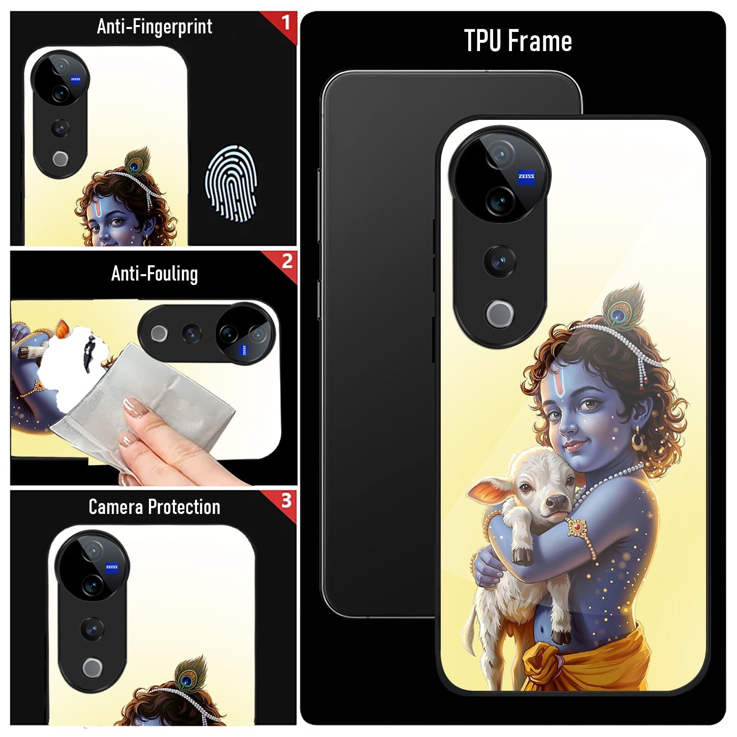 Vivo V40 Pro 5G Premium Acrylic Shockproof Glass Back Case (Cute Krishna)