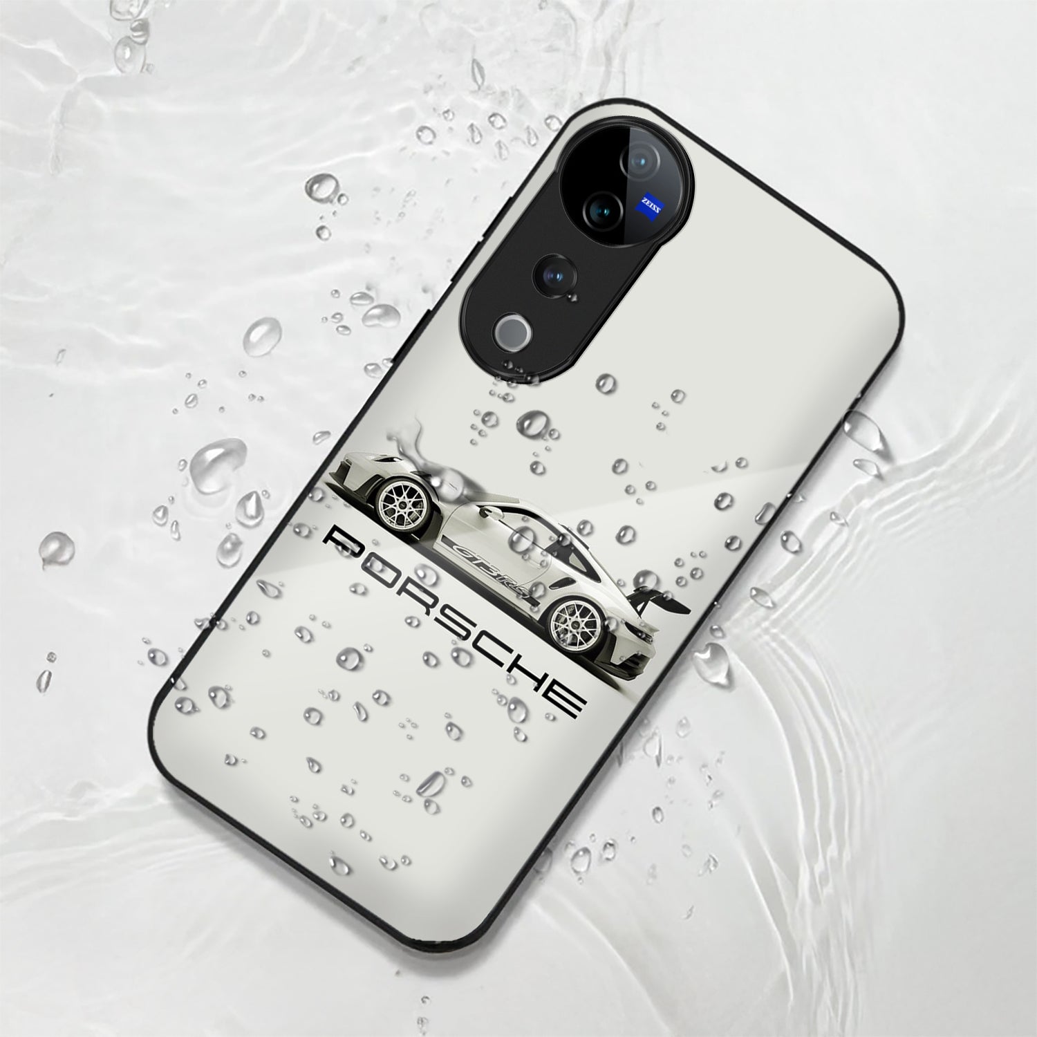 Vivo V40 Pro 5G Premium Acrylic Shockproof Glass Back Case (White Porsche)