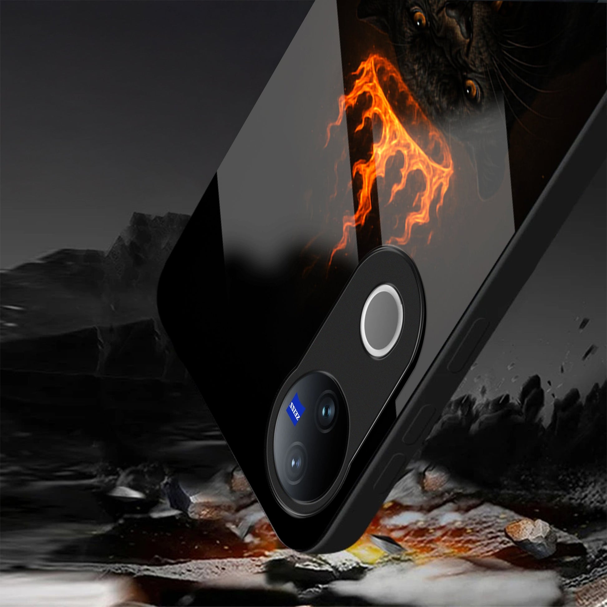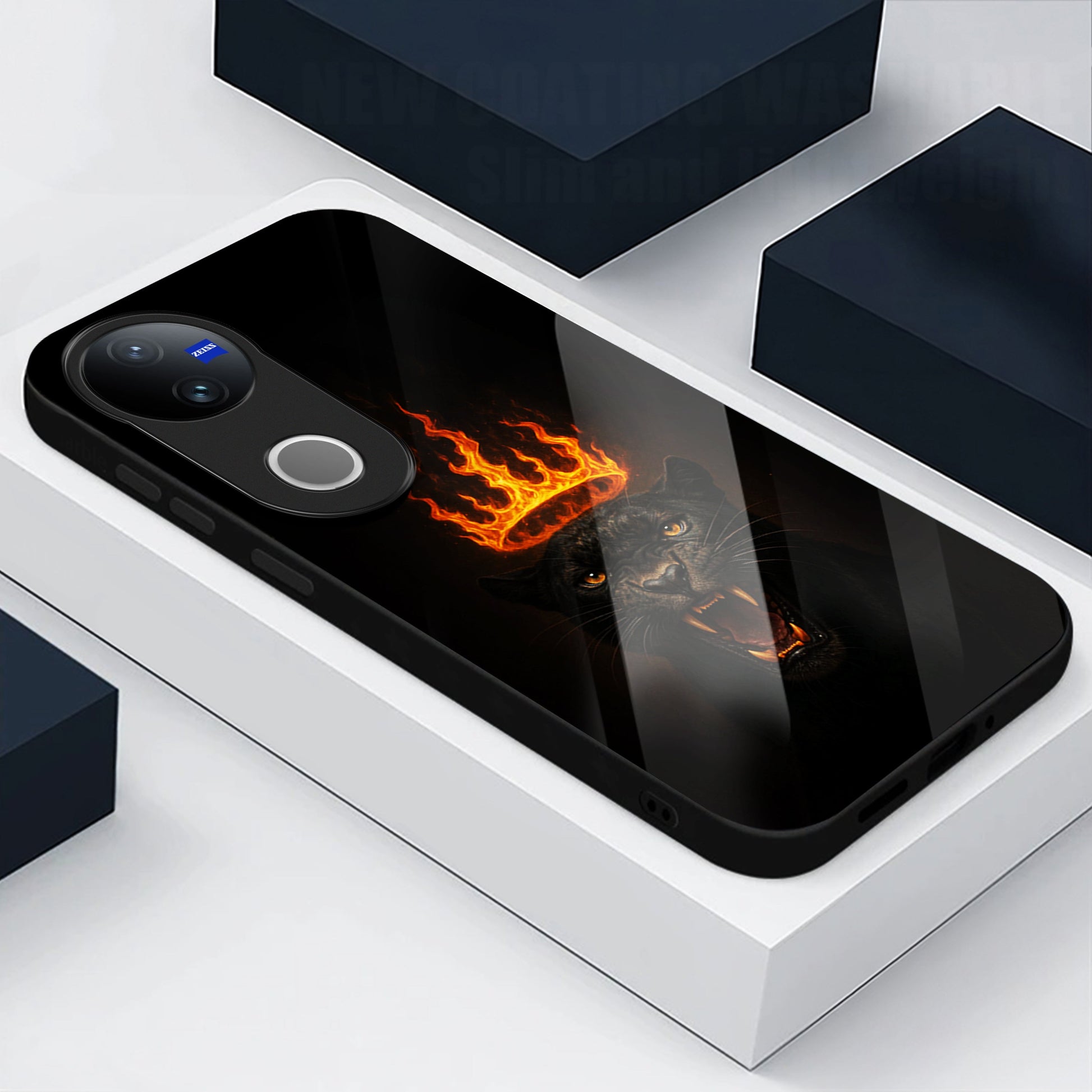 Vivo V50 5G Premium Acrylic Shockproof Glass Back Case (Crowned Inferno)