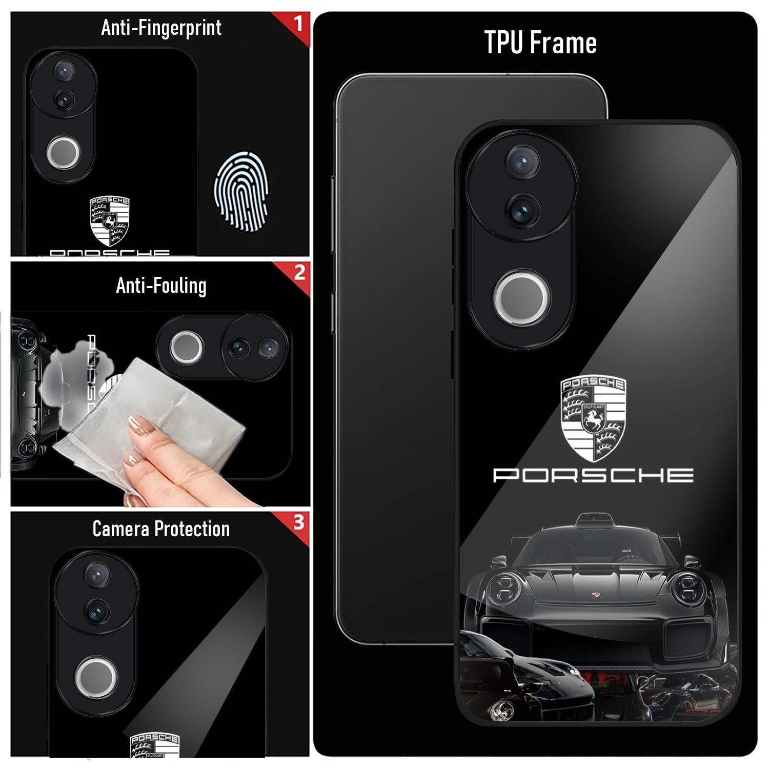 Vivo V50 5G Premium Acrylic Shockproof Glass Back Case (Black Porsche)
