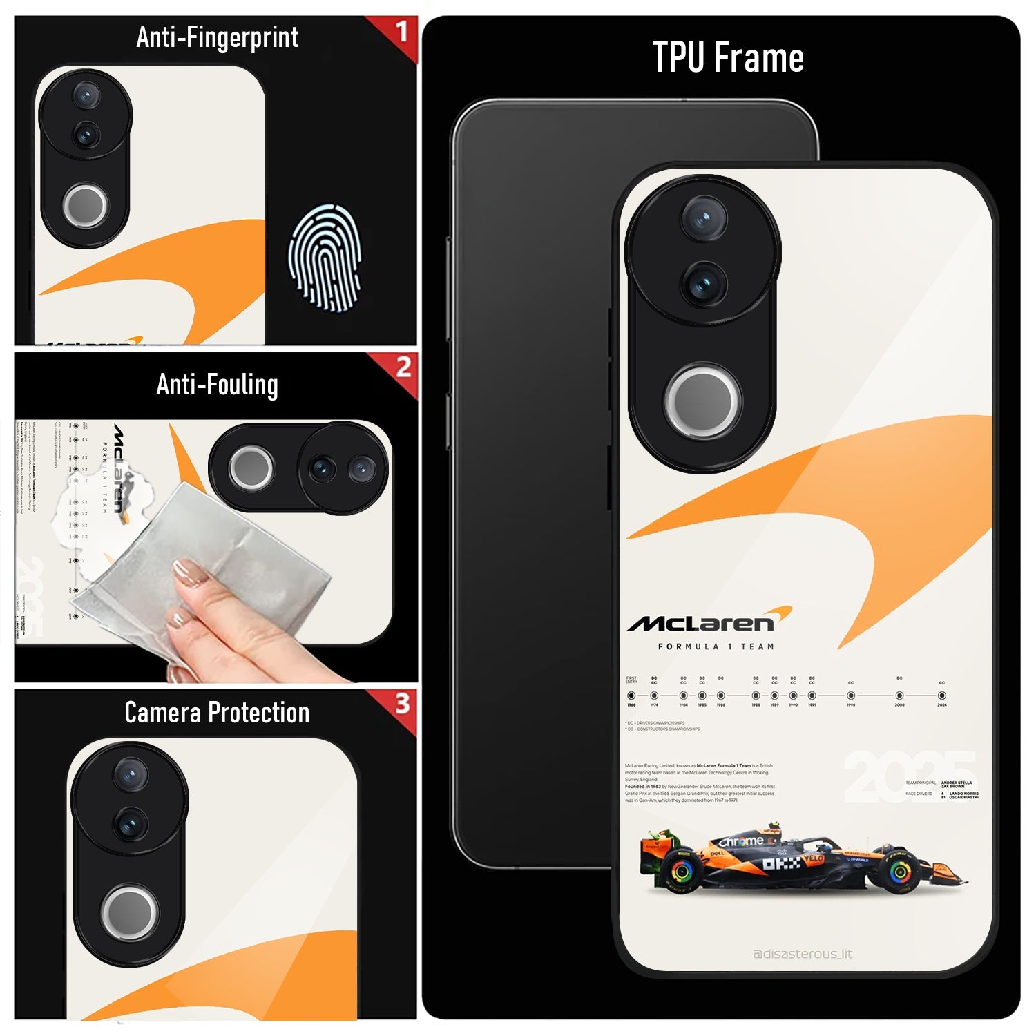Vivo V50 5G Premium Acrylic Shockproof Glass Back Case (McLaren Case)
