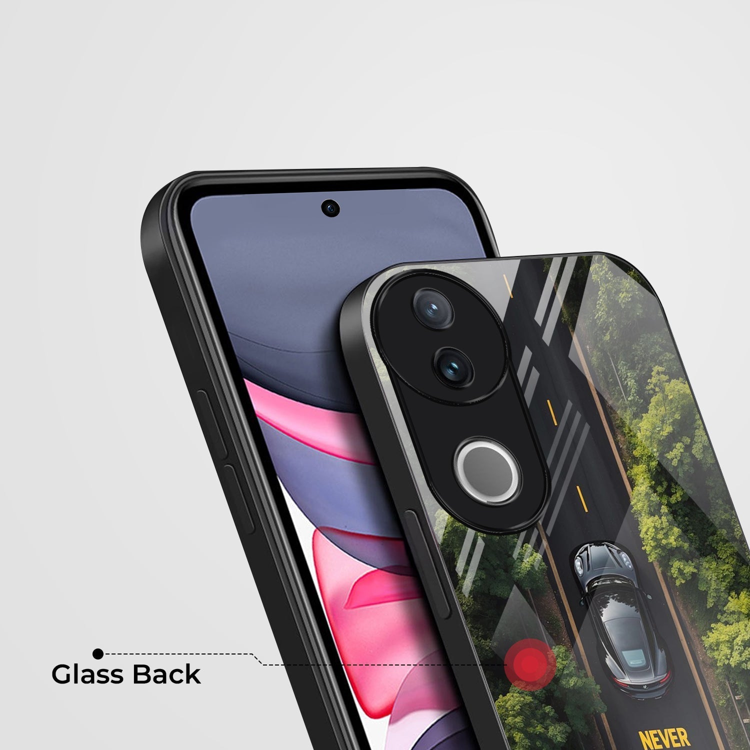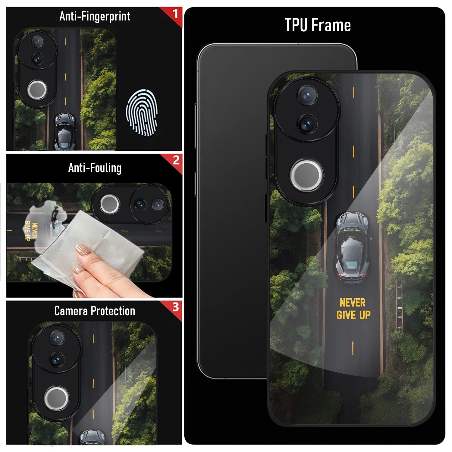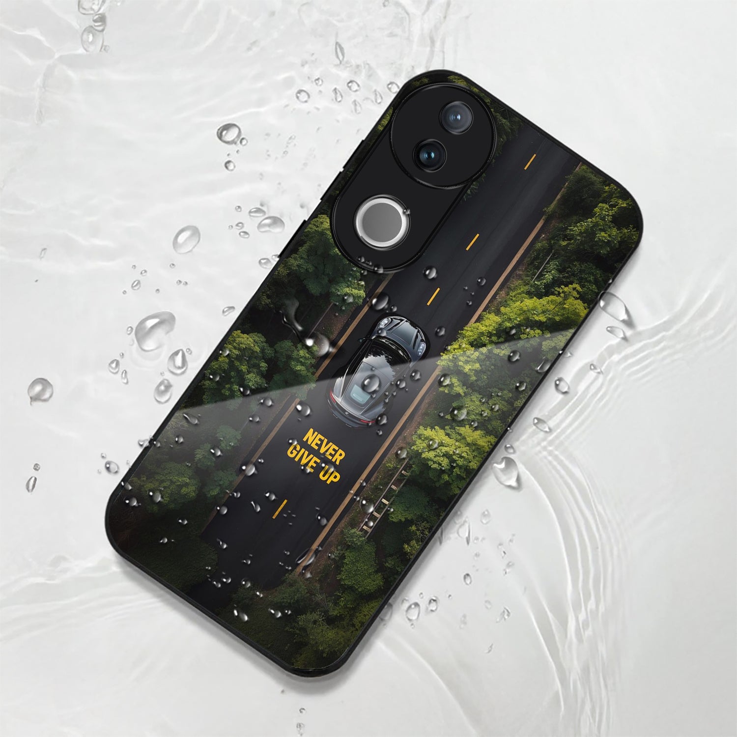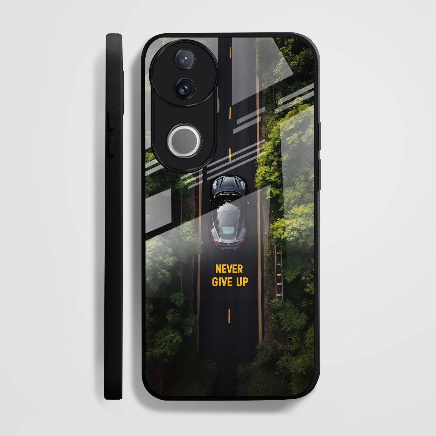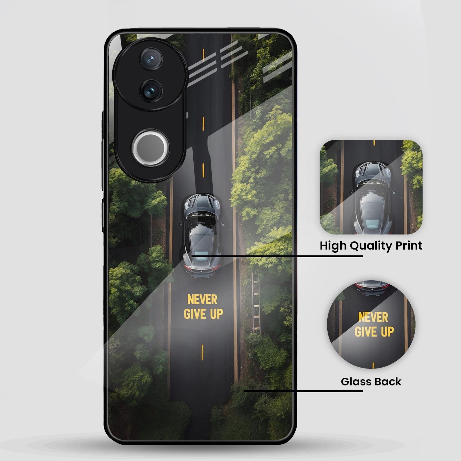 Vivo V50 5G Premium Acrylic Shockproof Glass Back Case (Road Never Give up)