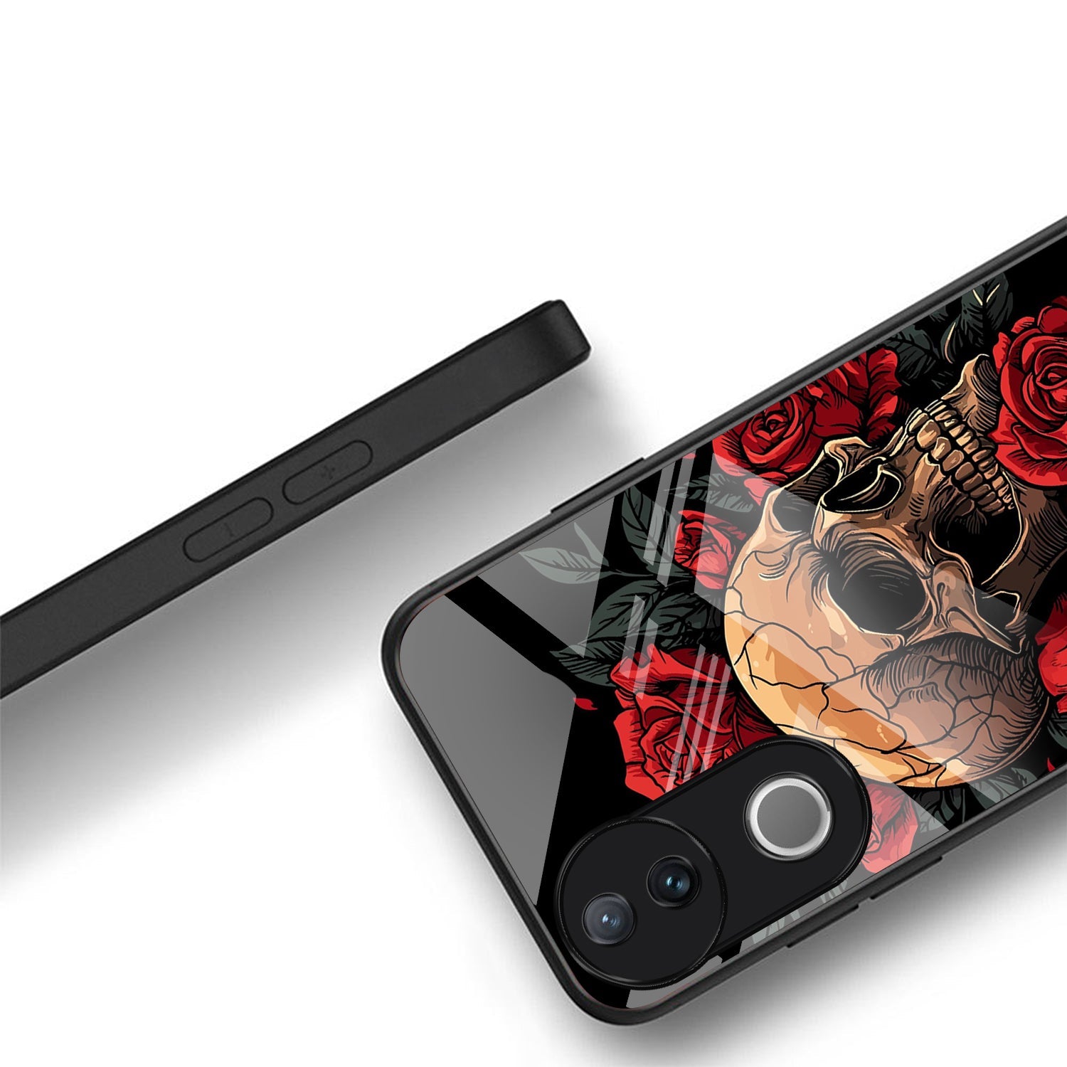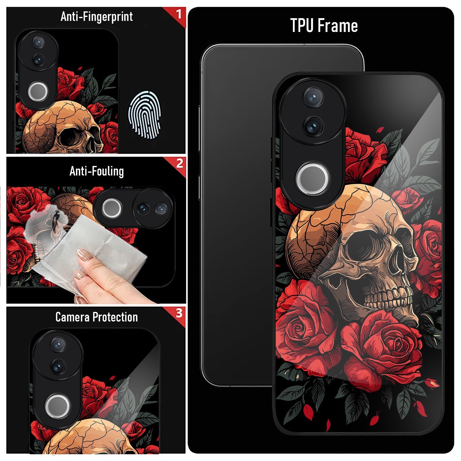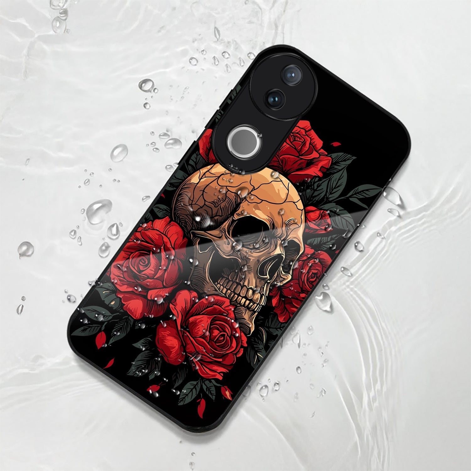 Vivo V50 5G Premium Acrylic Shockproof Glass Back Case (Rose Skull)