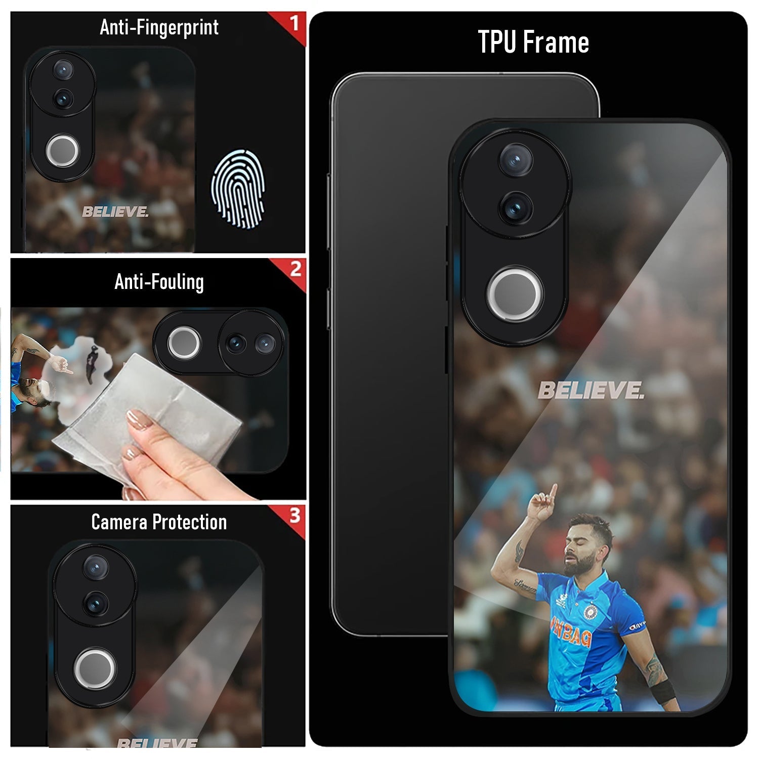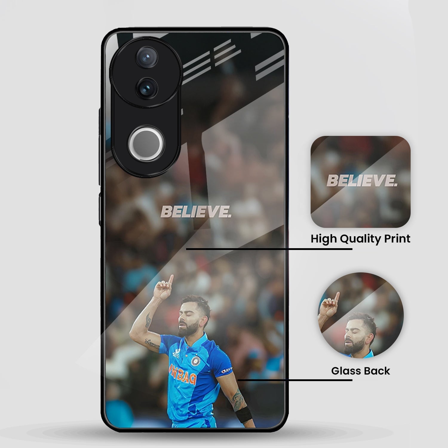 Vivo V50 5G Premium Acrylic Shockproof Glass Back Case (Virat Kohli)