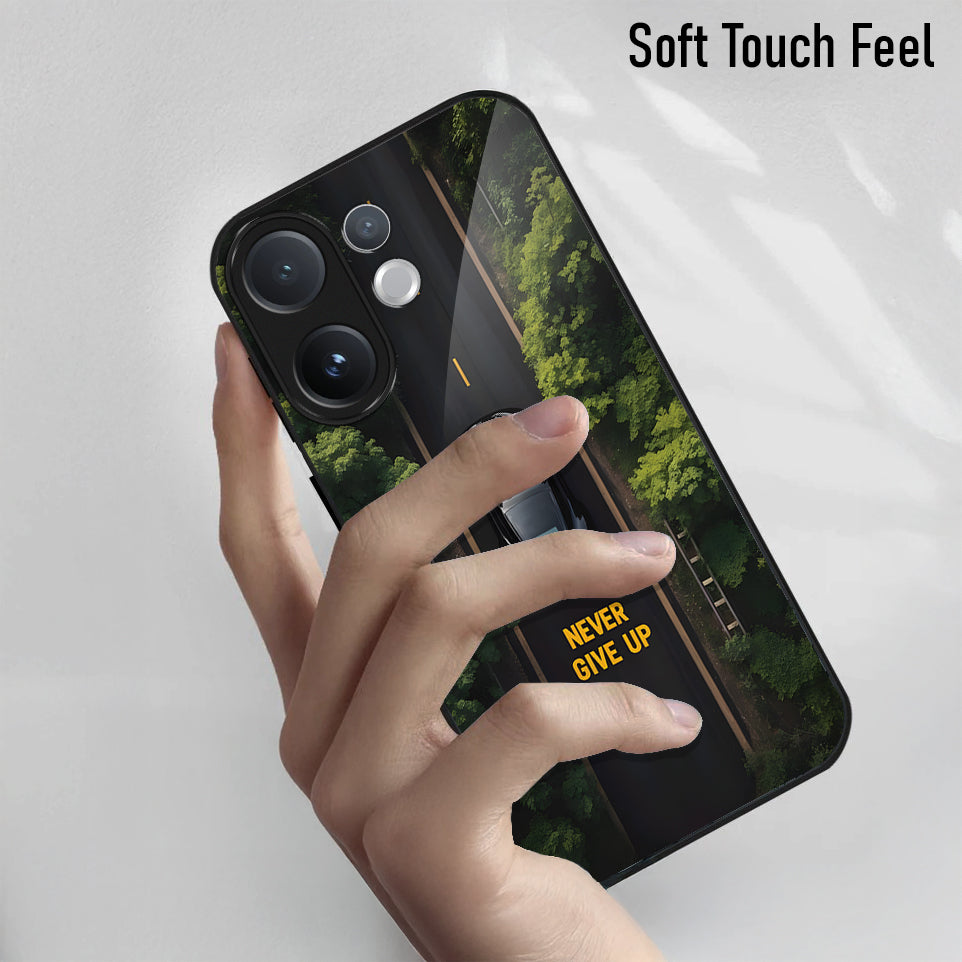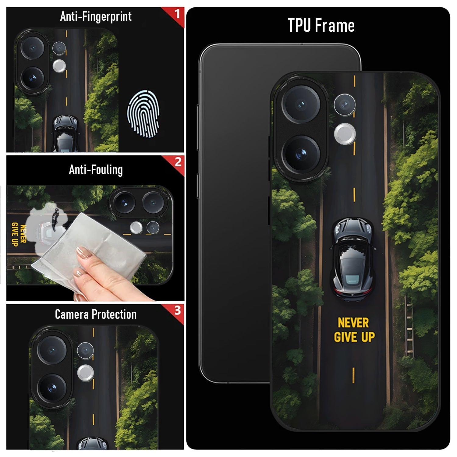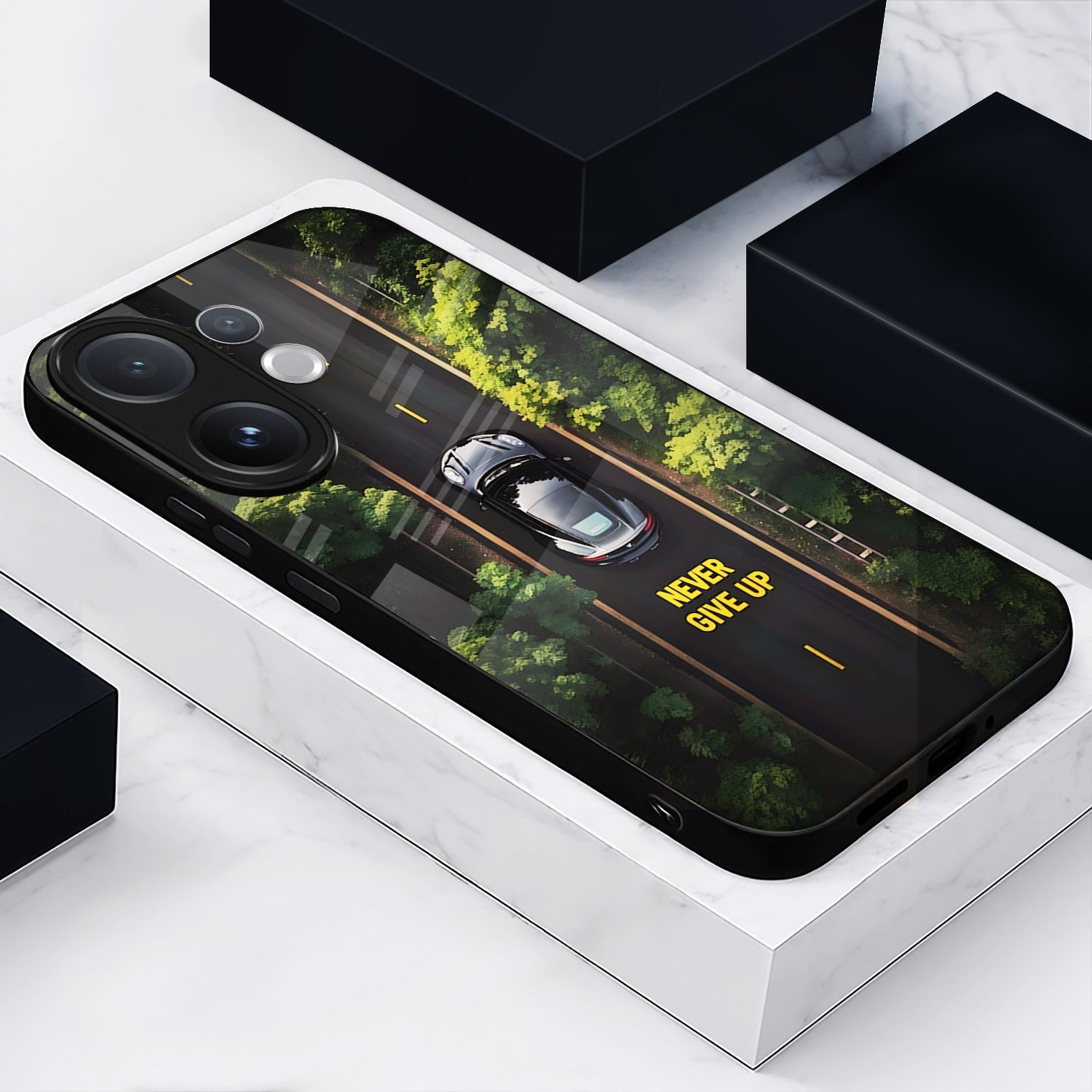 Vivo V60 5G Premium Acrylic Shockproof Glass Back Case (Road Never Give Up)